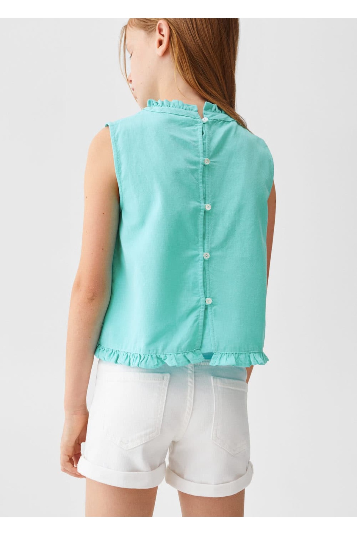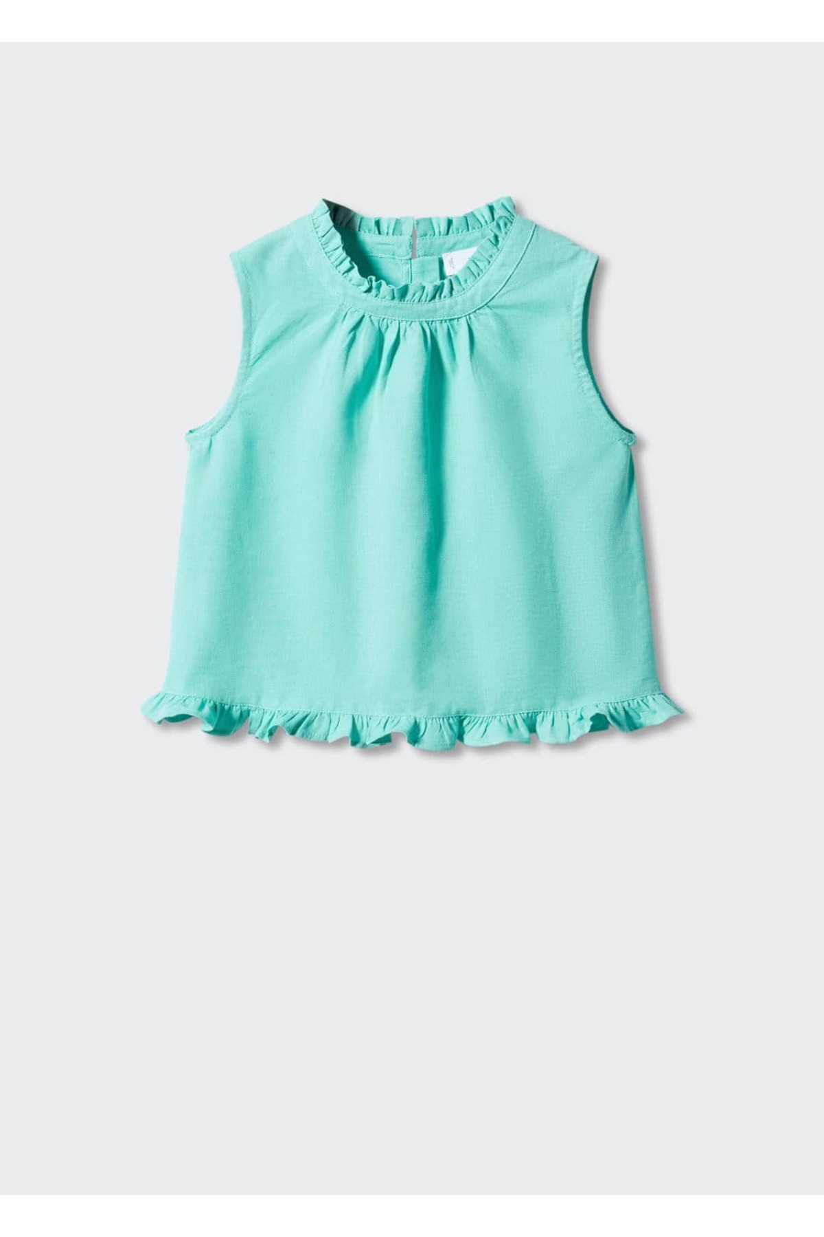 Bluz .– kala. Keten ve pamuk karışımlı, Büzgü detaylı, Arkası düğmeli, Yuvarlak yakalı, Büzgülü yaka, Kolsuz. 90% pamuk,10% keten. Arka uzunluk 46.0 cm. MAKİNEDE MAKS. 30°C’DE YIKAYIN, ÇAMAŞIR SUYU KULLANMAYIN, MAKS. 110°C İLE ÜTÜLEYİN, KURU TEMİZLEME YAPILMAZ, KURUTMA MAKİNESİNDE KURUTULAMAZ