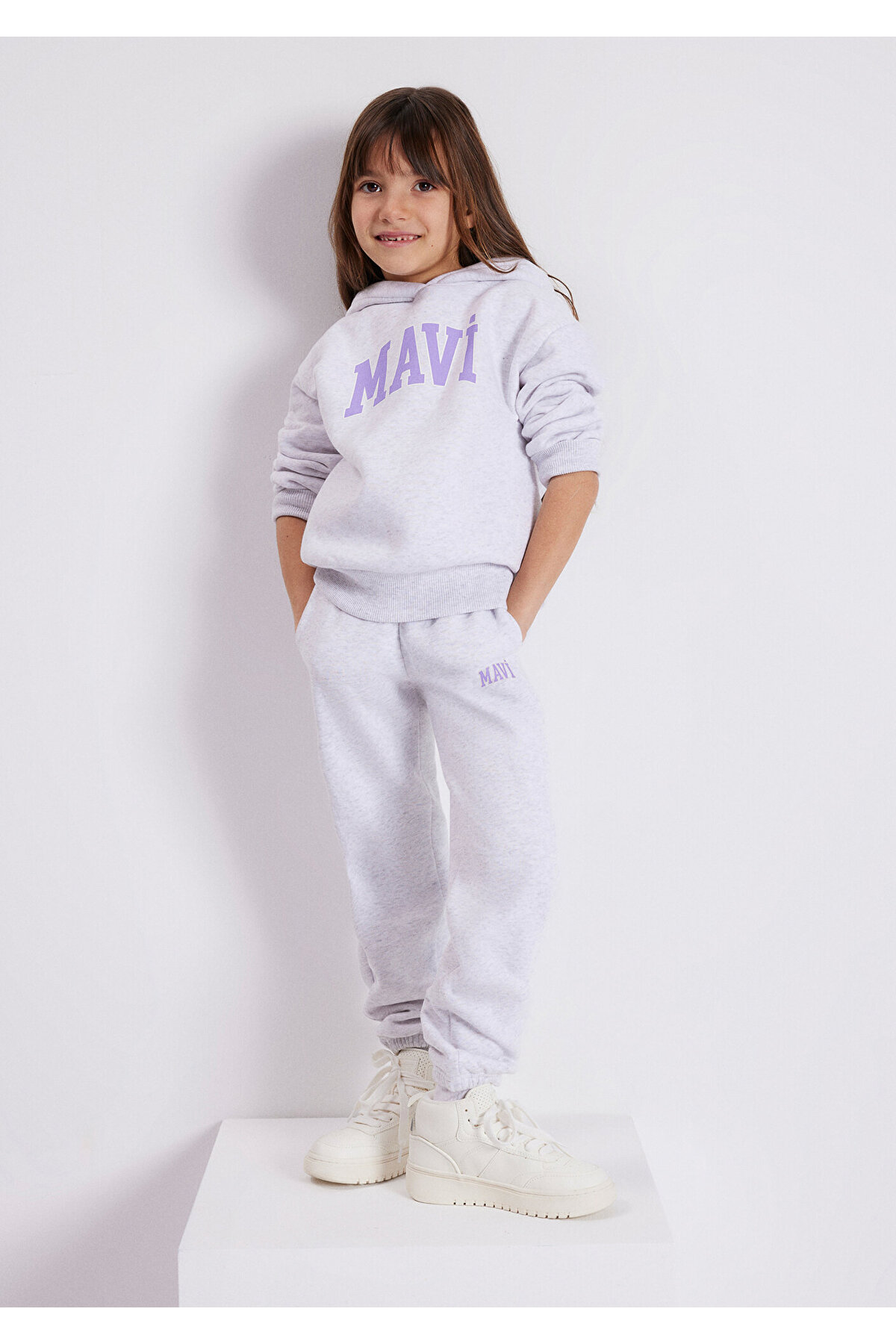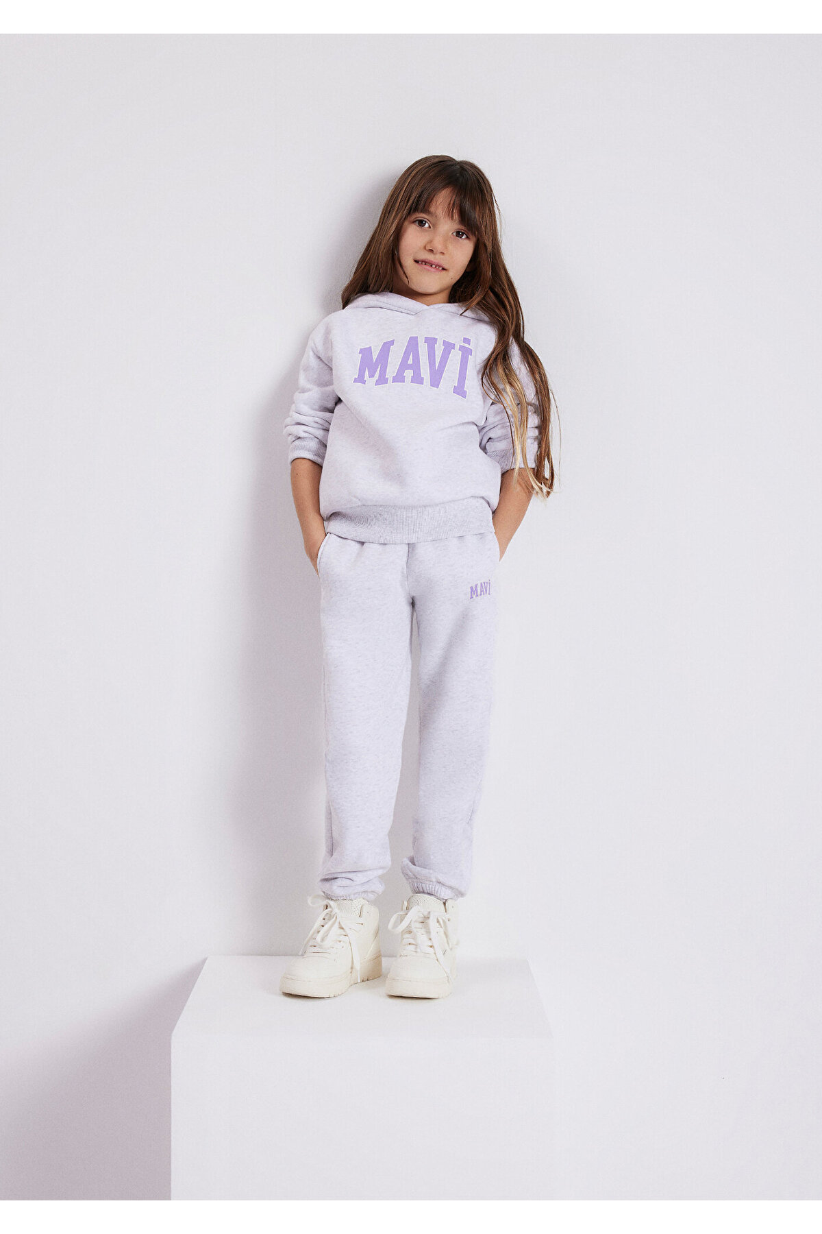 شلوار گرمکن خاکستری چاپ شده با لوگو آبی از مجموعه دخترانه Mavi. ویژگی های محصول: بند برجسته، دو جیب کناری، کمر قابل تنظیم با بند کشی، سرآستین های الاستیک. تناسب معمولی / برش معمولی جنس کمر بلند: 65% پنبه 35% پلی استر نوع پارچه: بافت جنسیت: آستین دخترانه: کمر استاندارد: کمر بلند