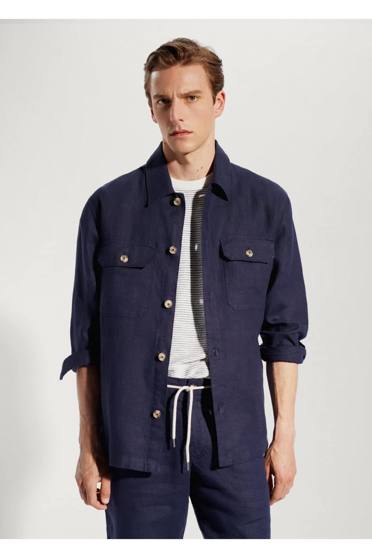 Ceket .– atrani. %100 keten kumaş, Regular kesim, Gömlek yakalı, Önü düğmeli, Göğüste iki düğmeli yama cep, İki ön cepli, Uzun kollu ve manşetleri düğmeli, Beli ayarlanabilir ve iç bağcıklı, Yan yırtmaçlı dikişler, Modelin boyu 190 cm’dir ve M beden giymektedir, Baştan aşağı görünüm olarak mevcut takım, Normal kalıba göre daha büyük olduğu için bir beden küçüğünü almanızı öneririz. 100% keten, Astar cebi: 100% pamuk. Yan dikiş uzunluğu 45.4 cm, Arka uzunluk 76.0 cm. KISA SANTRFÜJLE MAKİNEDE MAKS. 30°C’DE YIKAYIN, ÇAMAŞIR SUYU KULLANMAYIN, MAKS. 110°C İLE ÜTÜLEYİN, PERKLOROETİLEN KURU TEMİZLEME UYGULAYIN, KURUTMA MAKİNESİNDE KURUTULAMAZ