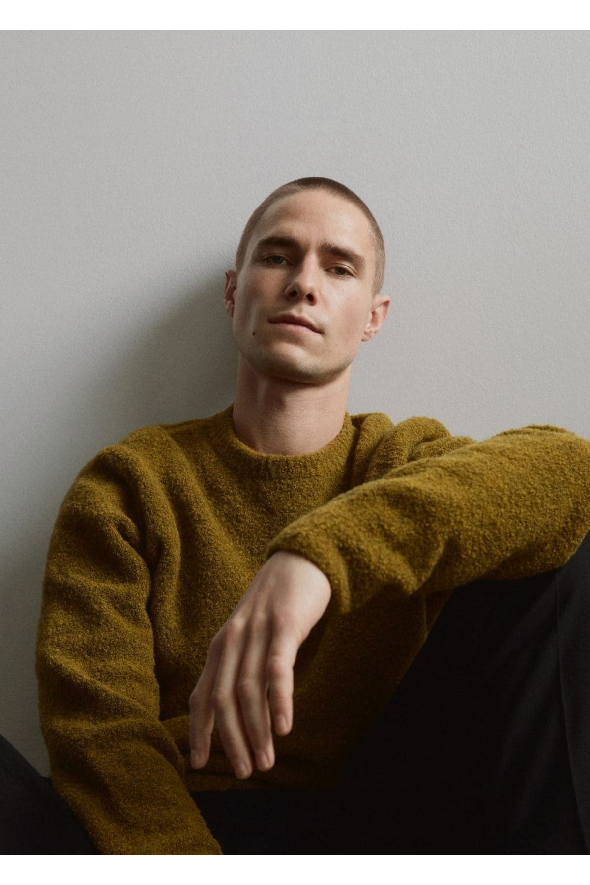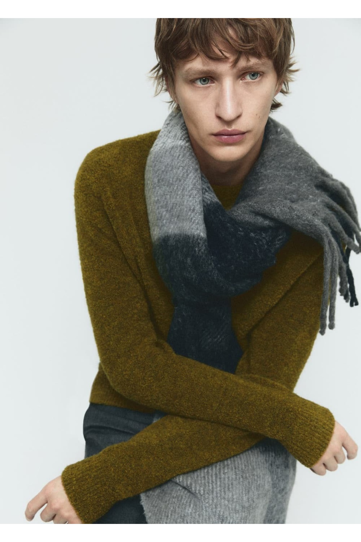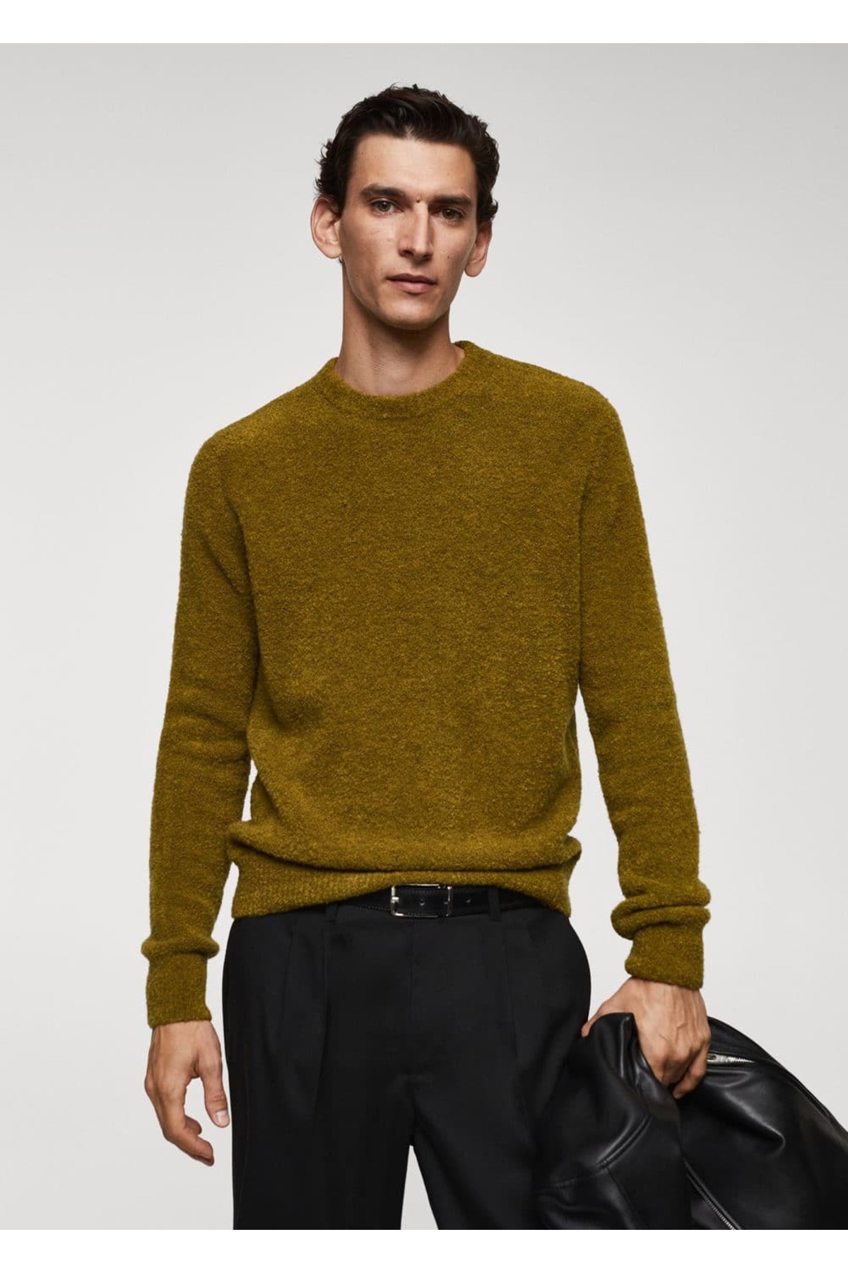 ژاکت .– ترفند. پارچه پشمی مخلوط، برش معمولی، یقه گرد، آستین بلند، ساق راست، خط بافت روی یقه، آستین و پایین، مدل قد 190 سانتی متر و سایز M می باشد. 60٪ اکریلیک، 31٪ پلی آمید، 7٪ پشم، 2٪ الاستین. طول پشت 71.5 سانتی متر. حداکثر دست در دمای 30 درجه سانتی گراد بشویید، از سفید کننده استفاده نکنید، حداکثر. اتو در دمای 110 درجه سانتیگراد، خشک شویی با پرکلرو اتیلن، قابل خشک کردن در خشک کن نیست.