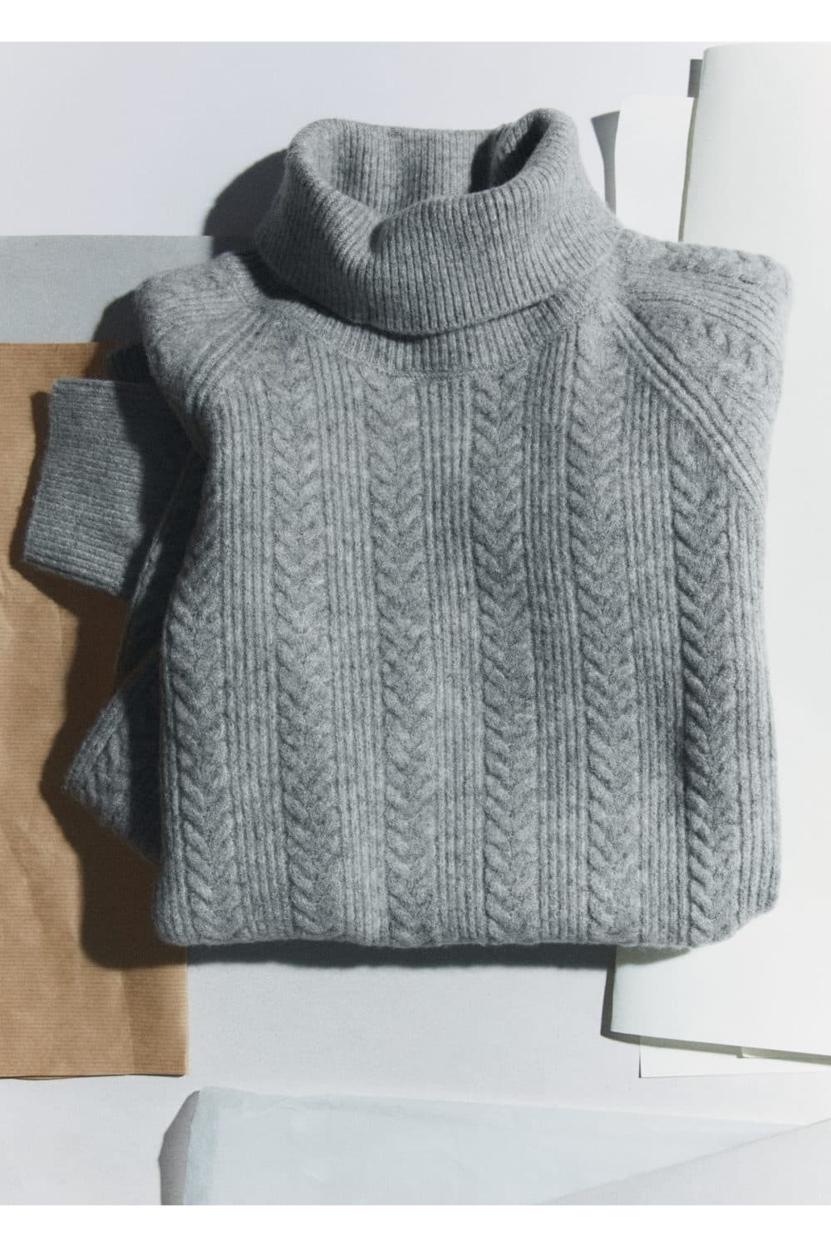 قزاقستان .– ماریا. پارچه بافتنی ضخیم، طرح ساده، طرح بافتنی، یقه لاک پشت، آستین بلند، ساق راست، خط بافت روی یقه، آستین و پایین، مدل قد 190 سانتی متر و سایز M می باشد. 40٪ پلی استر، 20٪ اکریلیک، 20٪ پلی آمید، 16٪ ویسکوز، 4٪ پشم. طول پشت 72.0 سانتی متر. حداکثر دست در دمای 30 درجه سانتی گراد بشویید، از سفید کننده استفاده نکنید، حداکثر. اتو را در دمای 110 درجه سانتیگراد، خشک شویی نکنید، در خشک کن نمی توان آن را خشک کرد.