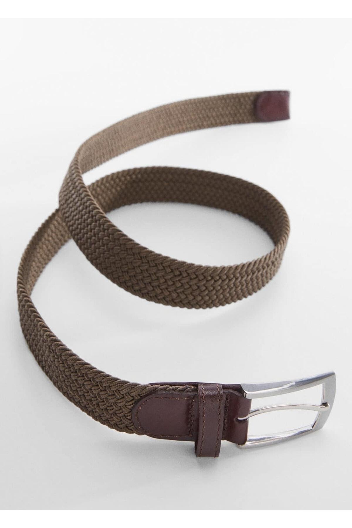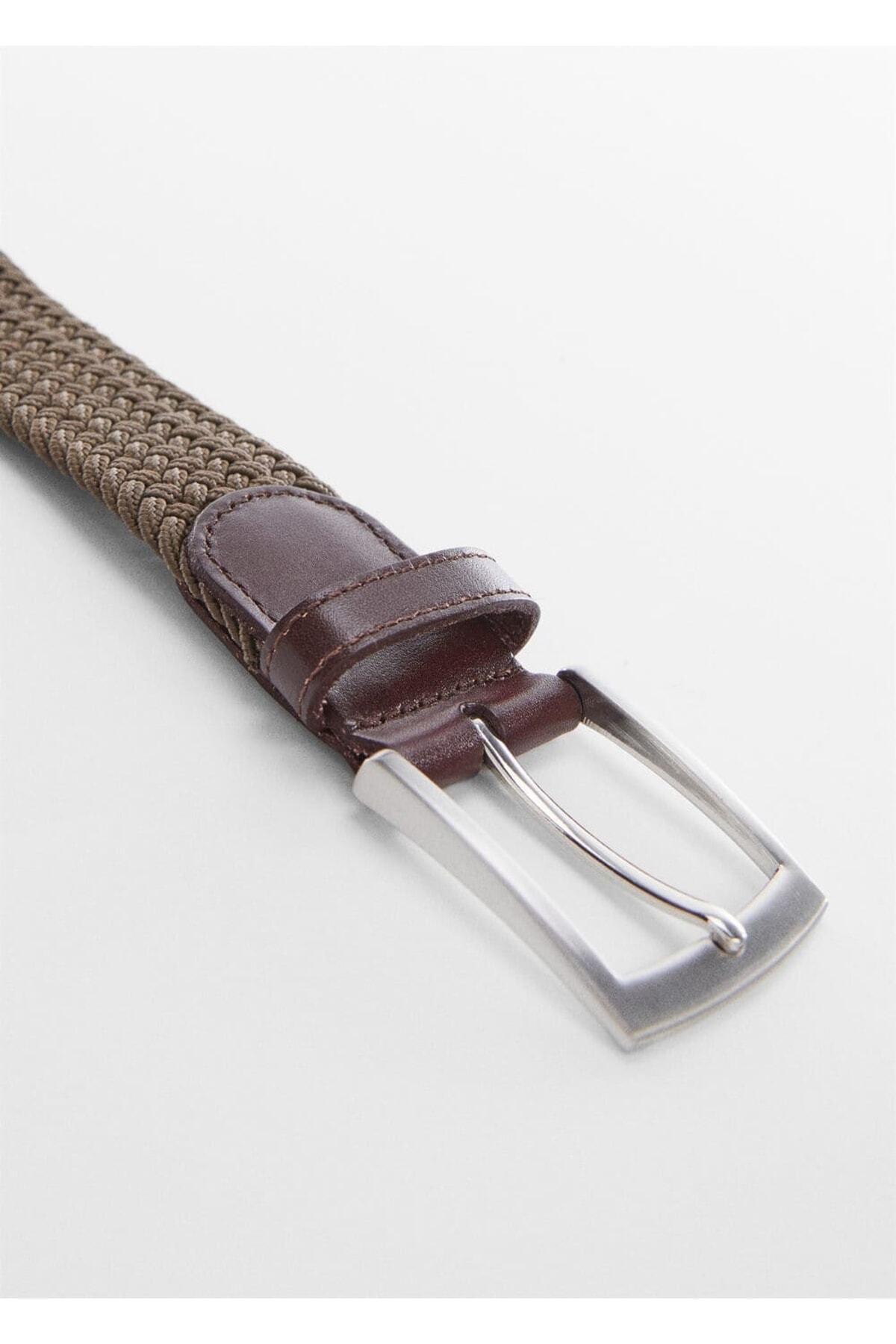 کمربند .– الاستیک. پارچه کشسان، تناسب معمولی، طرح بافتنی، بستن سگک مربعی، جزئیات چرمی. 80% پلی استر بازیافتی، 20% گاوی، بست: 100% روی. 80.0×4.0cm (طولxعرض). نشویید، سفید کننده نشوید، اتوکشی نکنید، خشک شویی نکنید، نمی توان در خشک کن خشک کرد