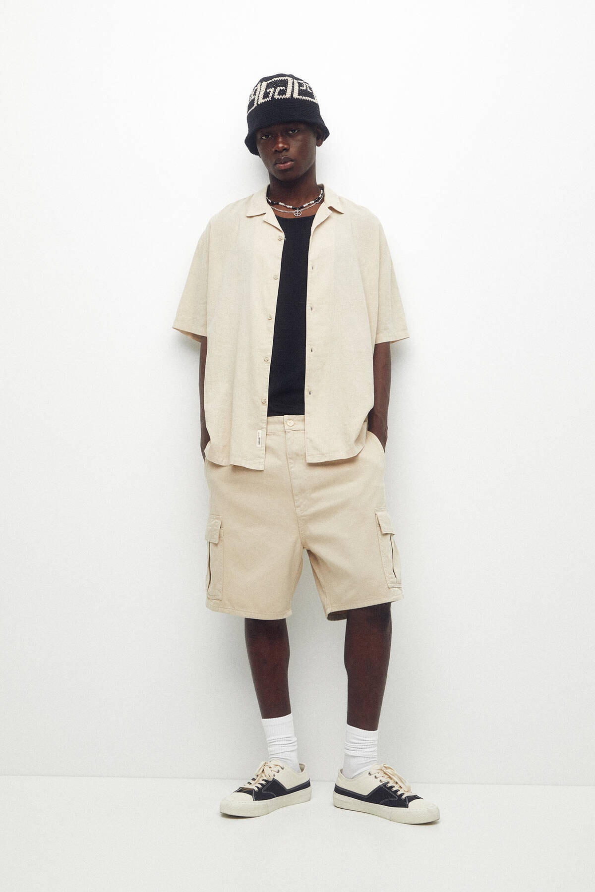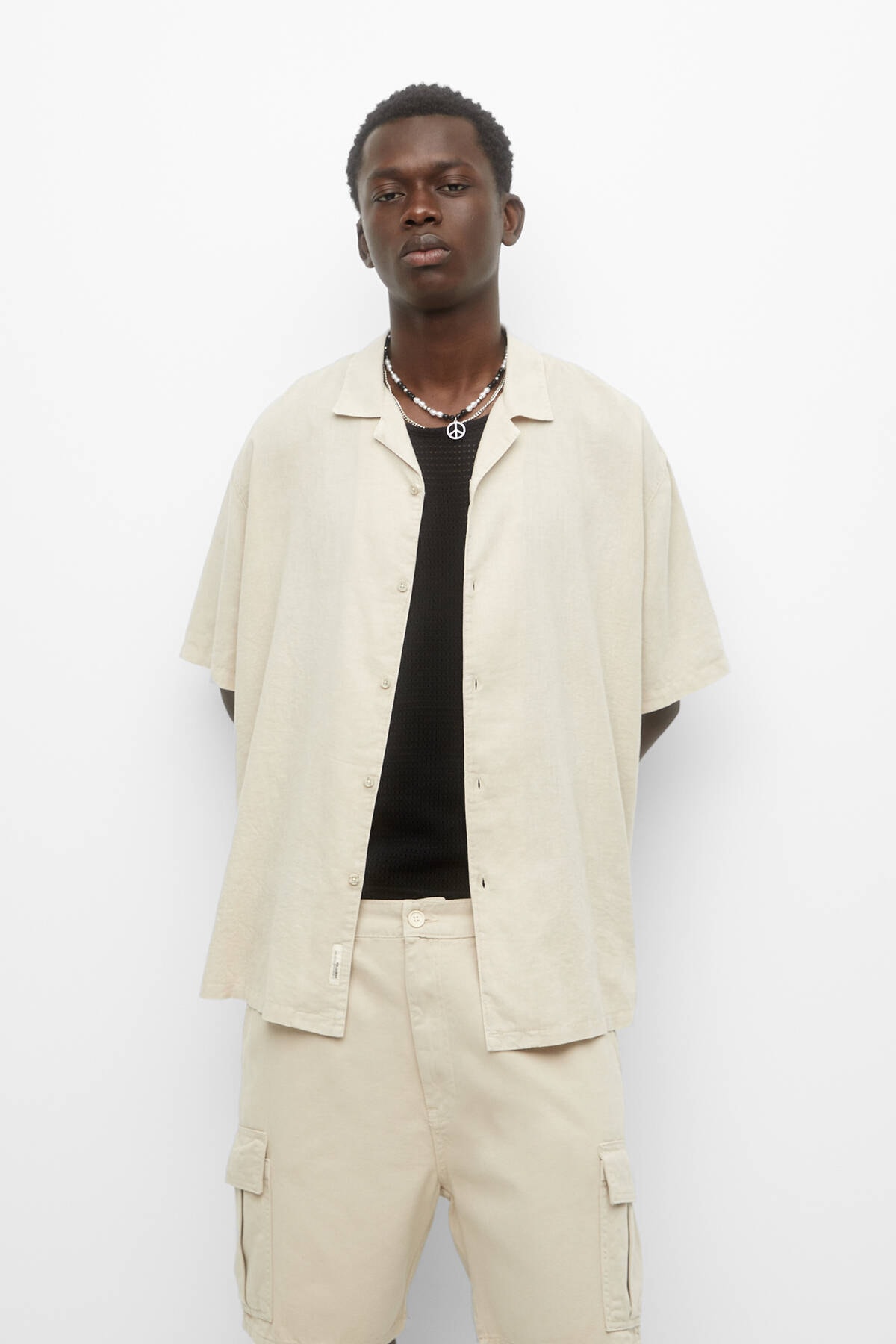 پیراهن بژ آستین کوتاه مردانه پول اند بیر | 3473545