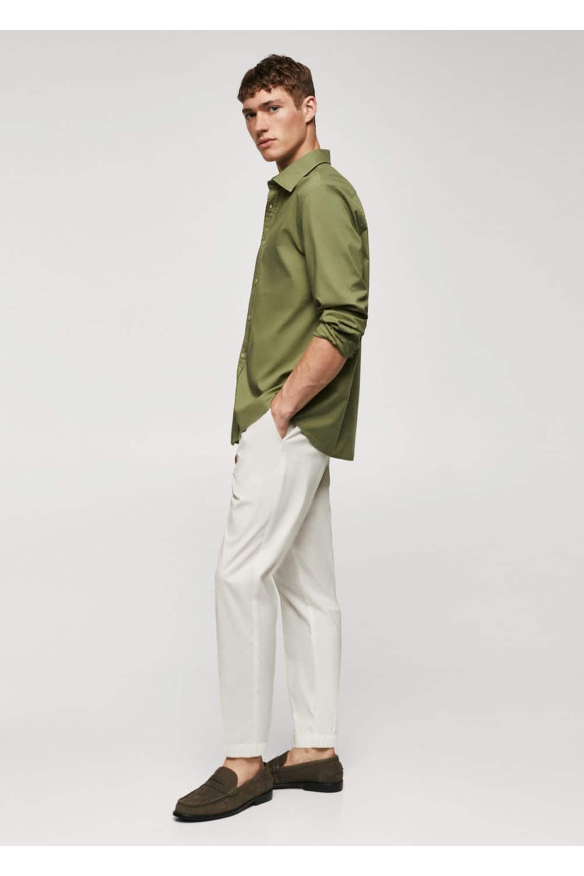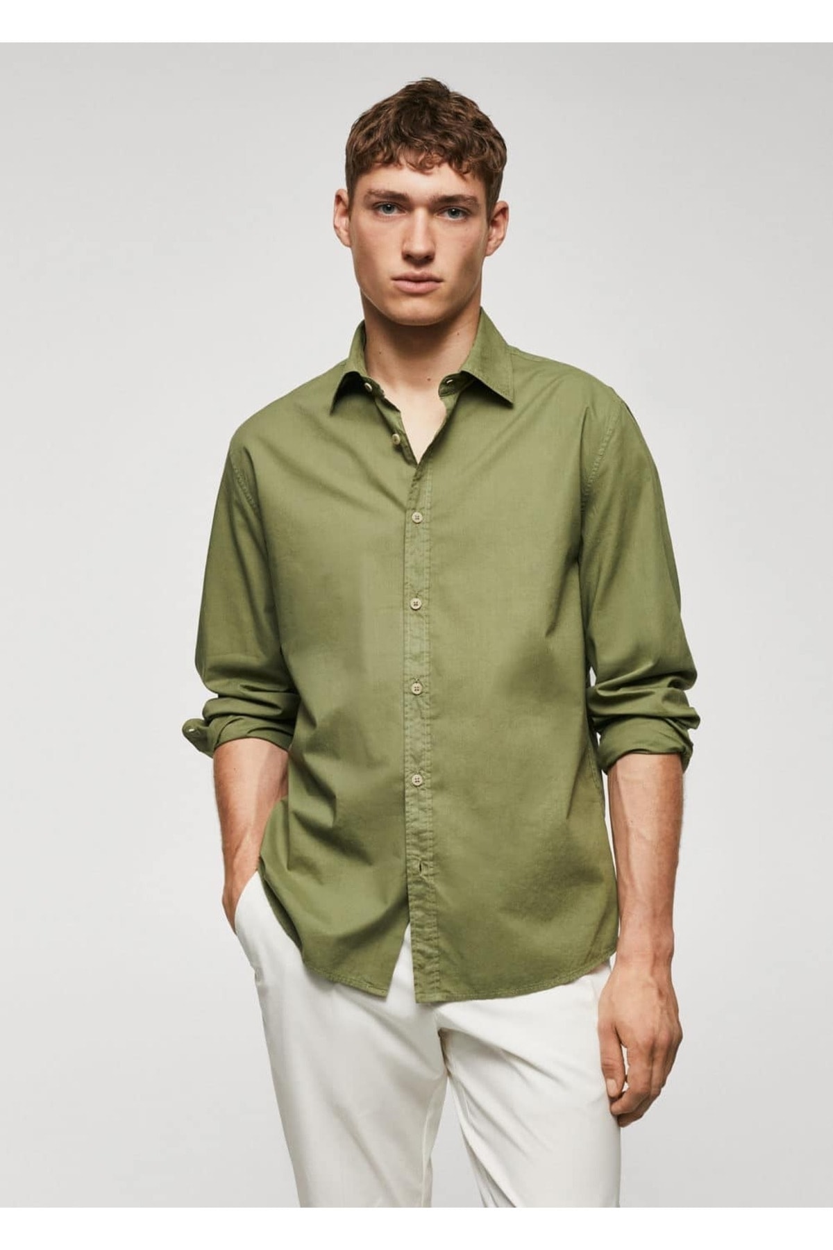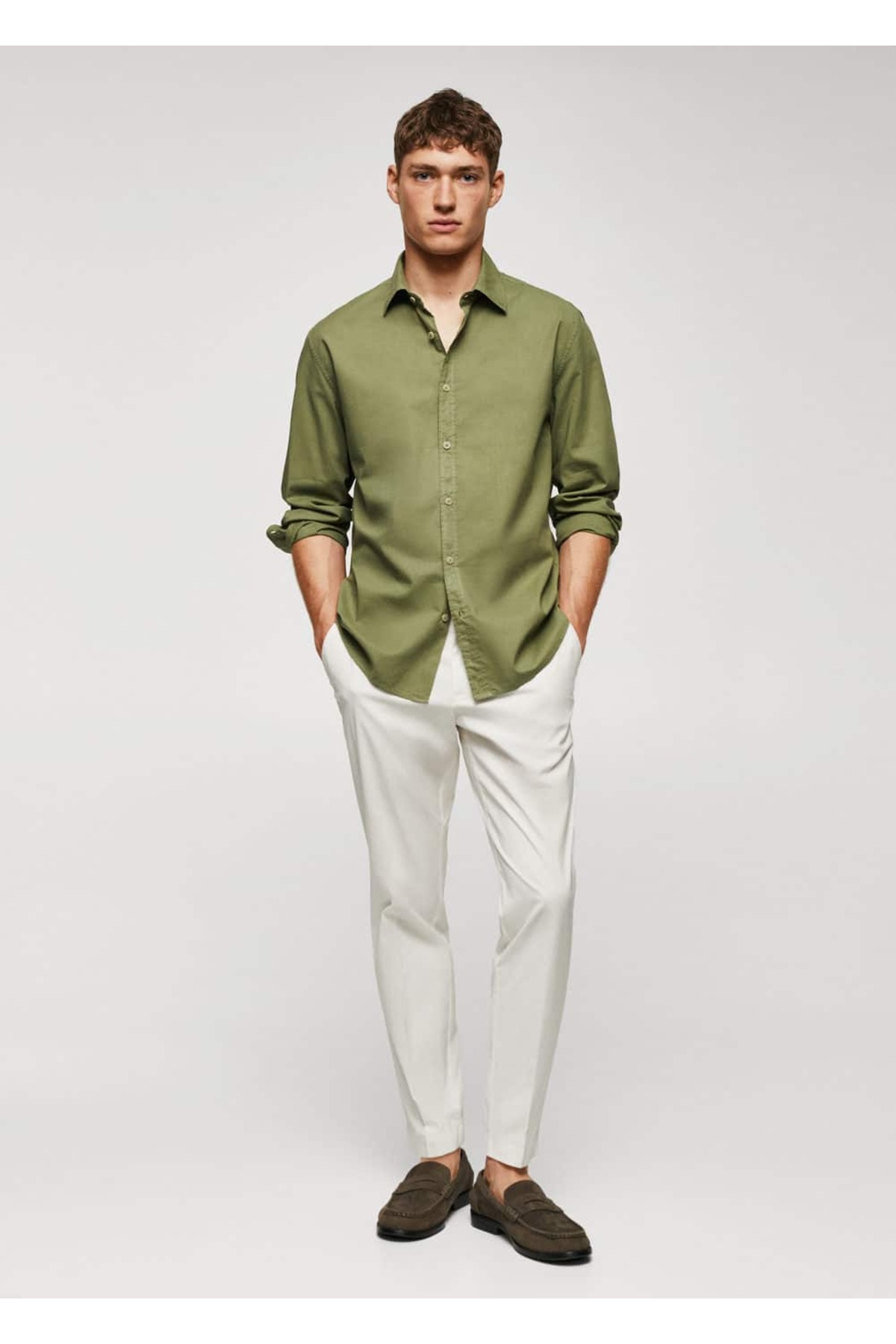 پیراهن خاکی مردانه مانگو 57040575
