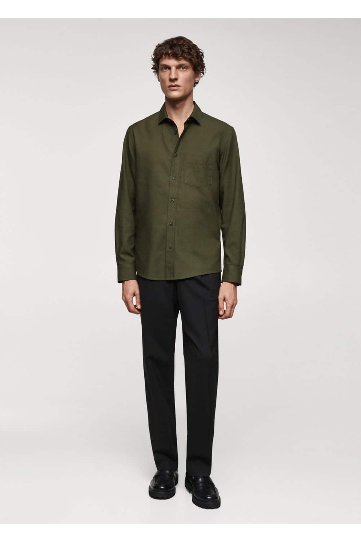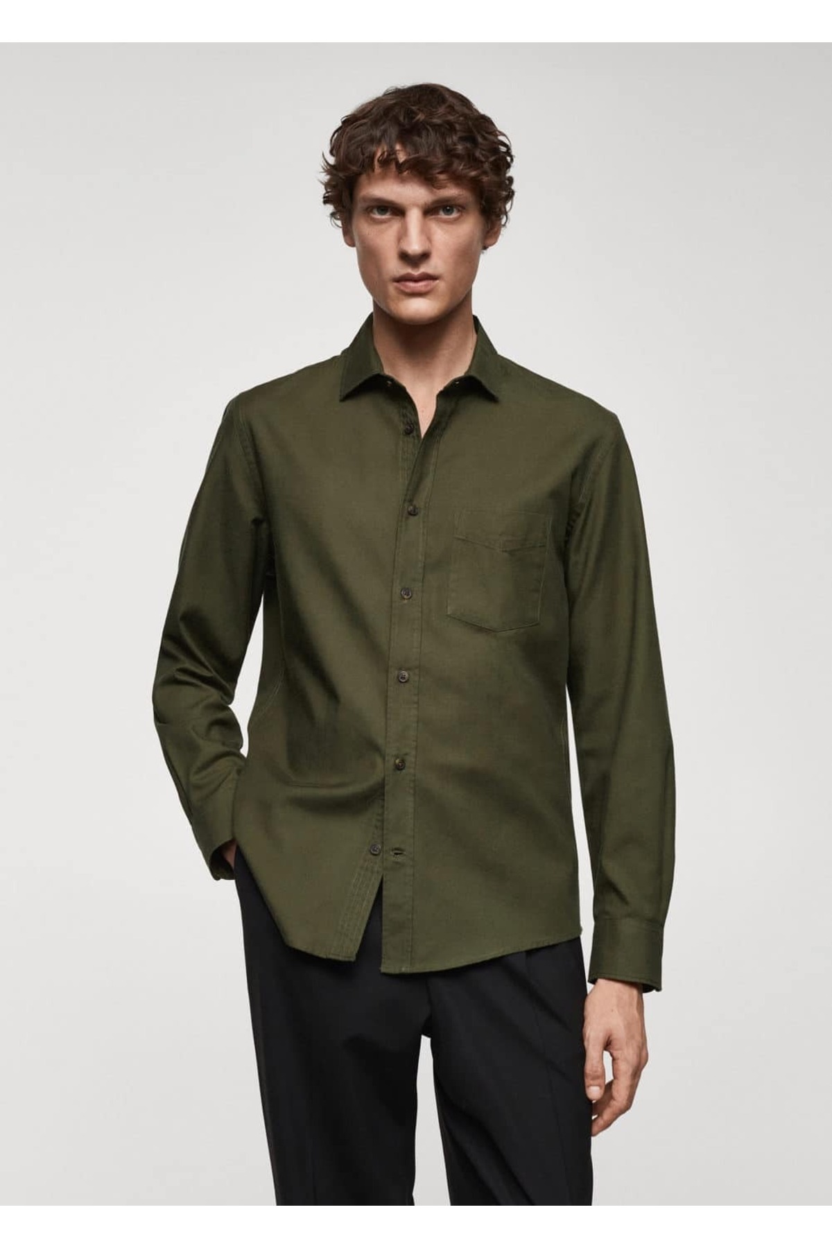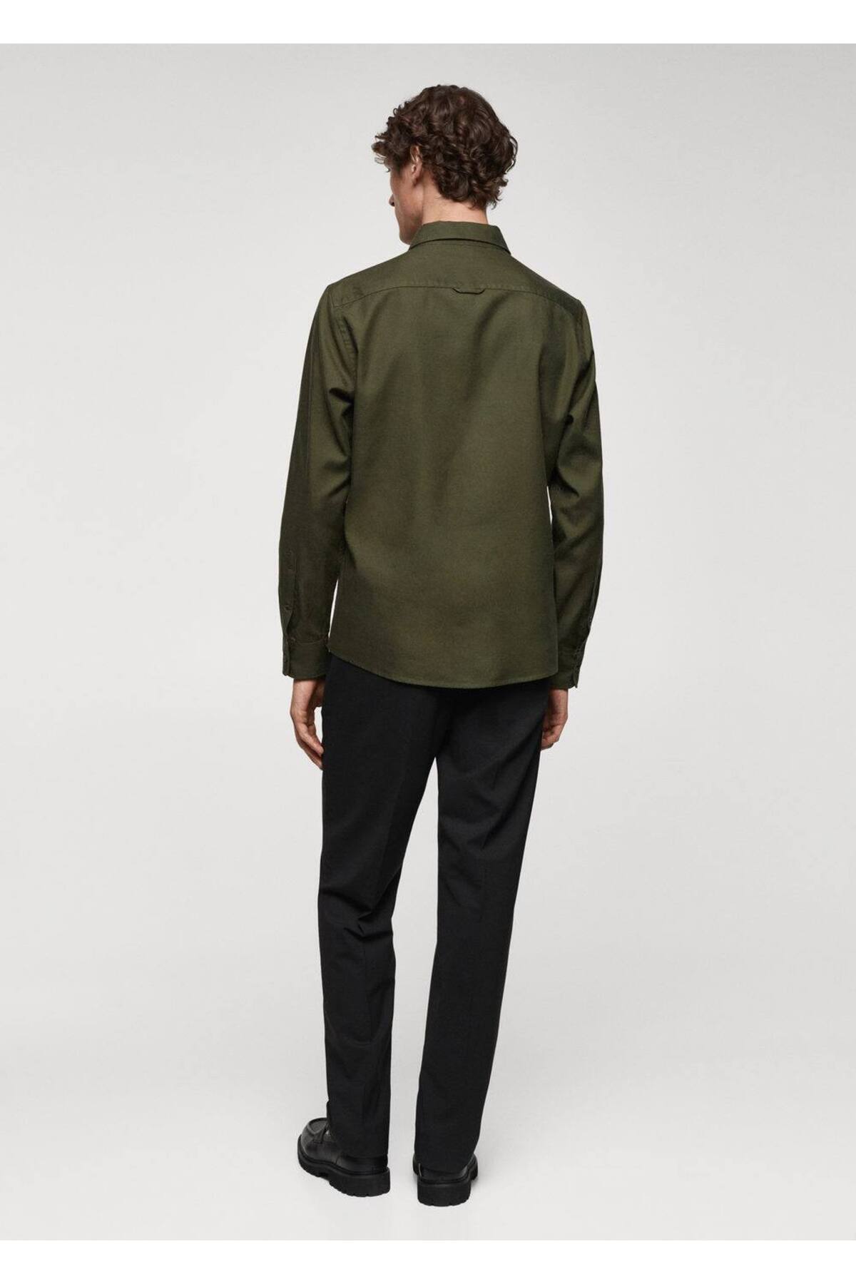پیراهن خاکی مردانه مانگو 67080635