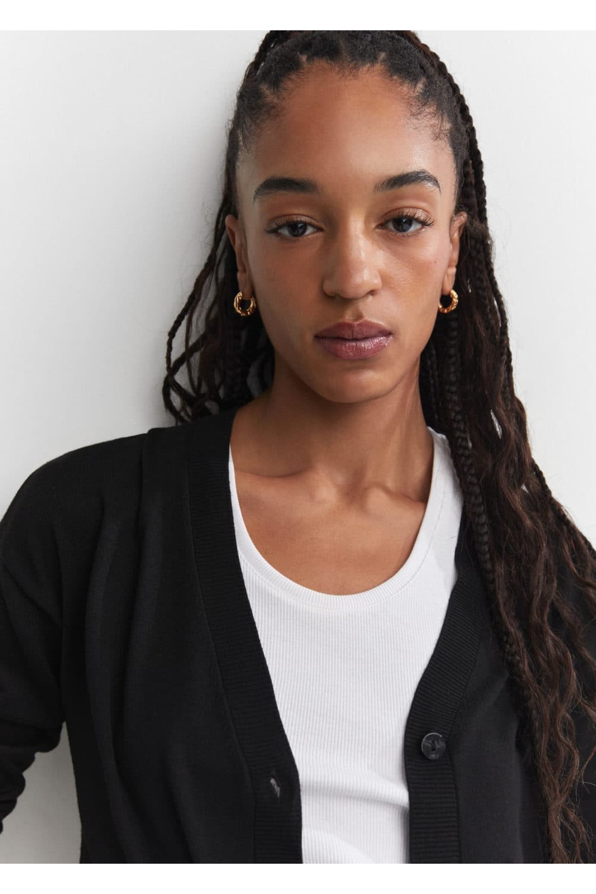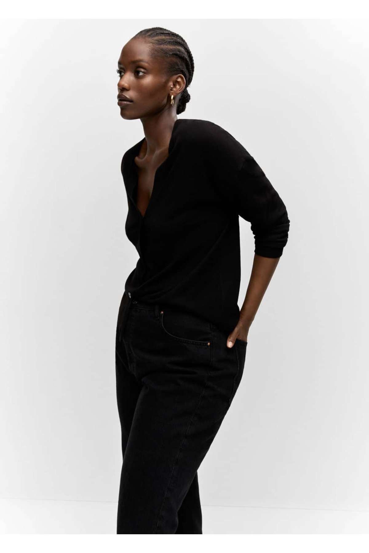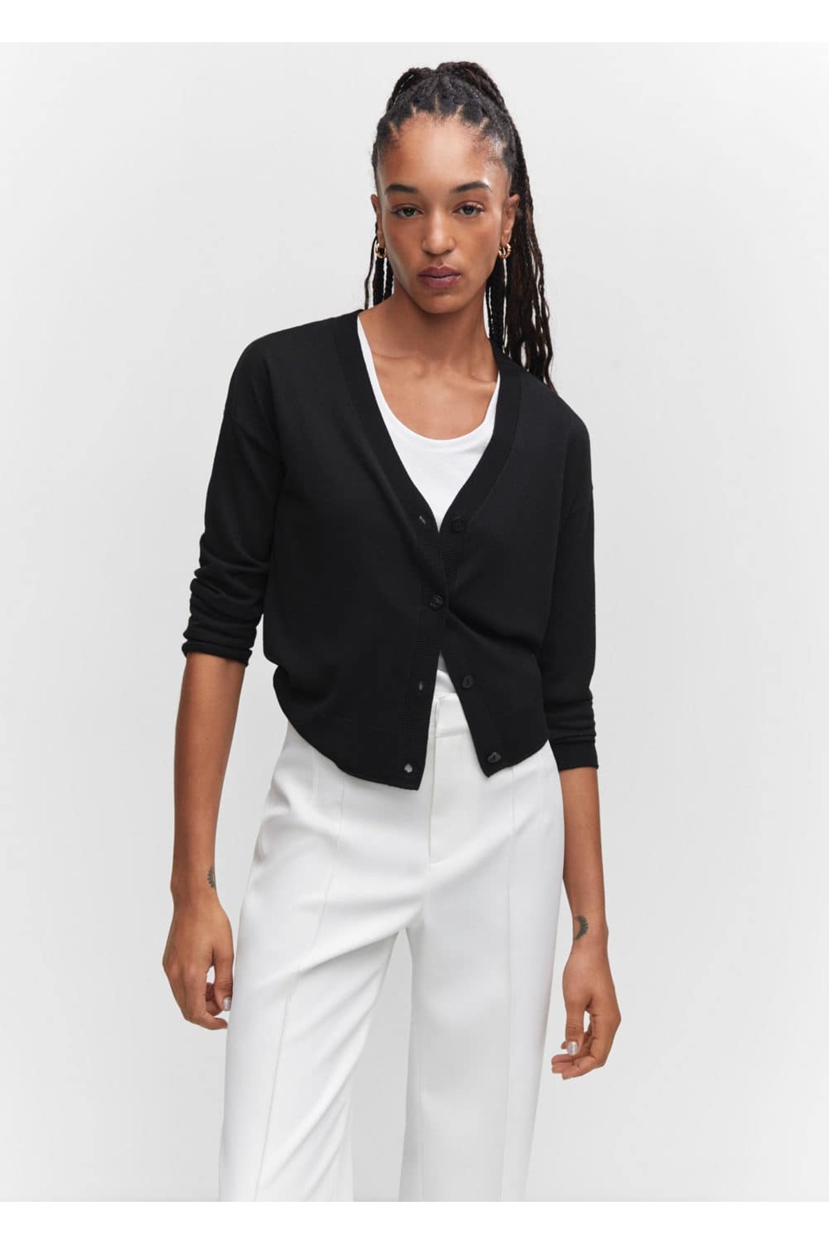 ژاکت کش باف پشمی .– لوکا. پارچه بافتنی ظریف، یقه V، طرح مستقیم، بسته شدن دکمه جلو، آستین بلند، سایز بزرگ موجود است. 38% ویسکوز، 34% پلی استر، 22% پلی آمید، 6% کشمیر. طول پشت 62.5 سانتی متر. حداکثر دست در دمای 30 درجه سانتی گراد بشویید، از سفید کننده حداکثر استفاده نکنید. اتو را در دمای 110 درجه سانتیگراد، خشک شویی نکنید، در خشک کن نمی توان آن را خشک کرد.