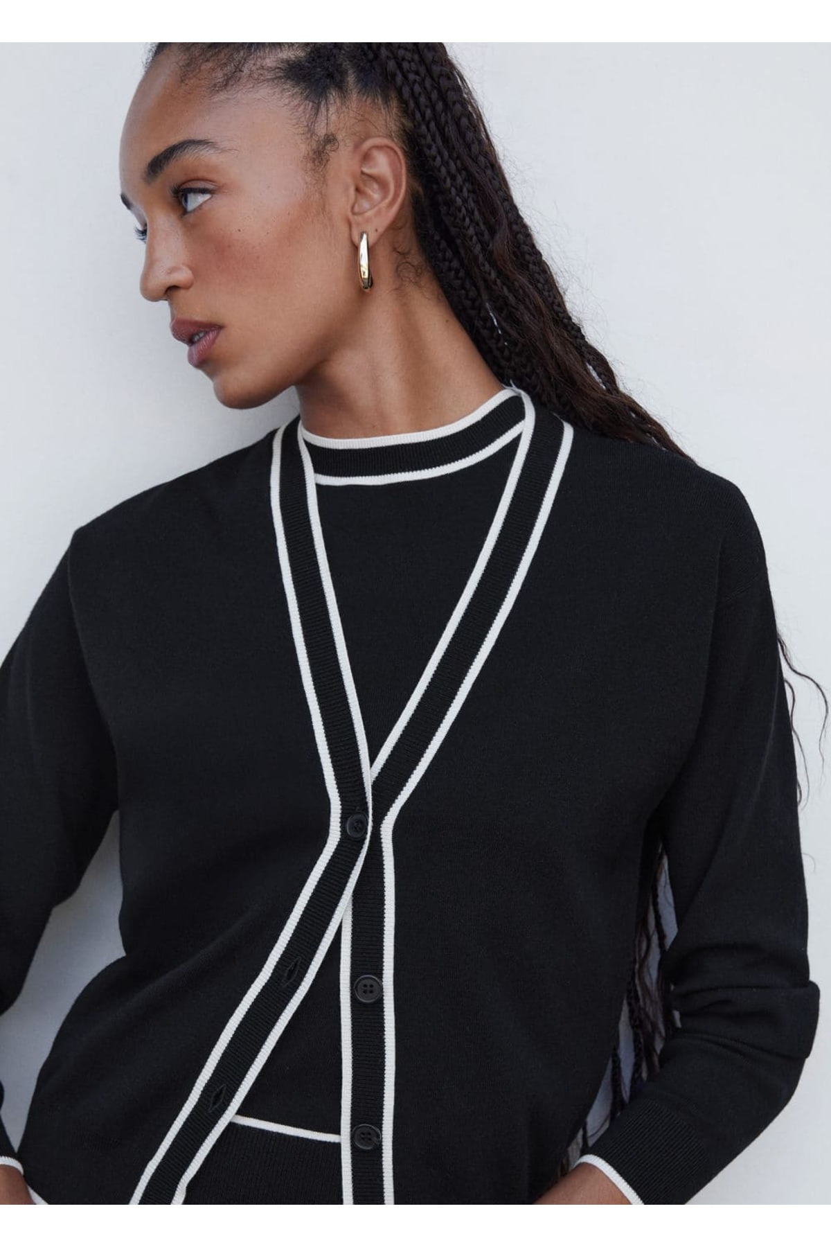 ژاکت کش باف پشمی .– pipping. پارچه بافتنی ظریف، طرح ساده، یقه V، آستین بلند، جزئیات نوار کنتراست، دکمه در جلو، ظاهر کامل. 60٪ ویسکوز، 40٪ پلی استر. طول پشت 58.5 سانتی متر حداکثر دست در دمای 30 درجه سانتی گراد بشویید، از سفید کننده حداکثر استفاده نکنید. اتو را در دمای 110 درجه سانتیگراد، خشک شویی نکنید، در خشک کن نمی توان آن را خشک کرد.