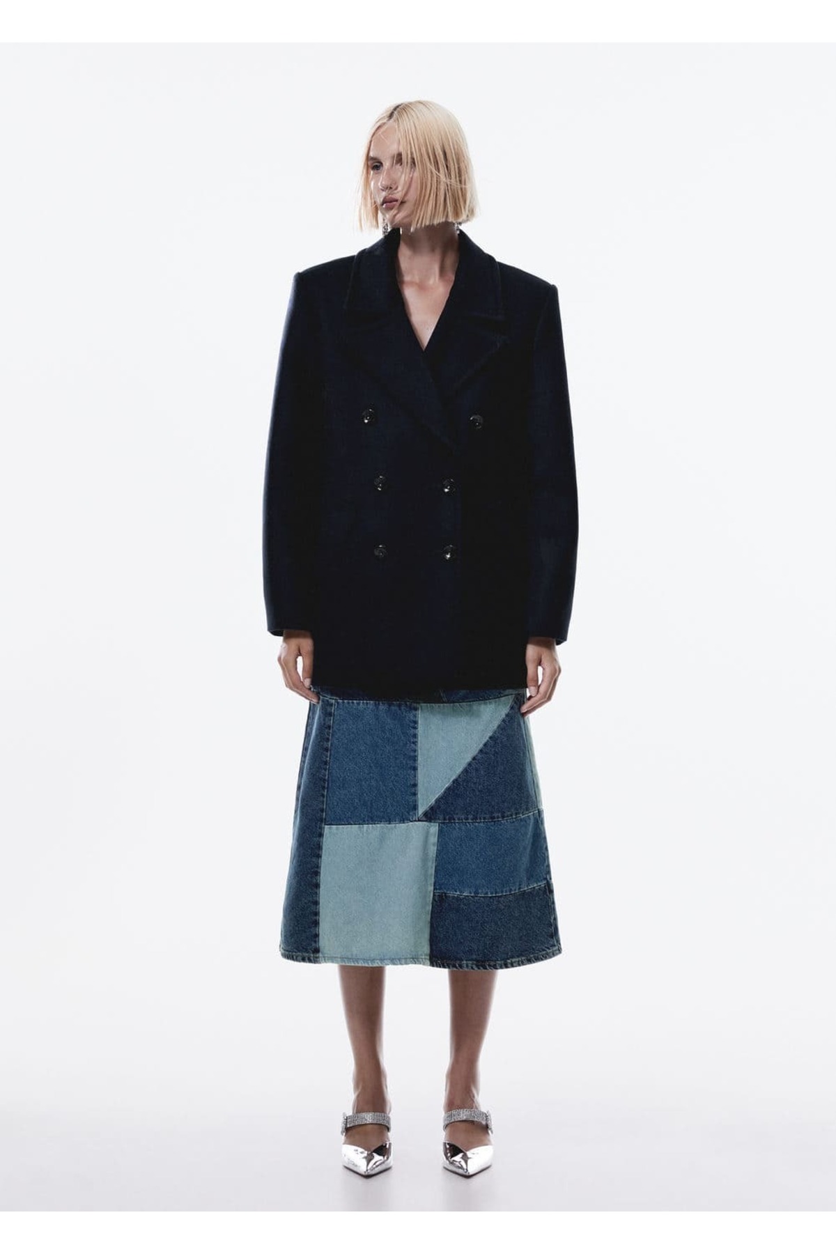 Palto .– flipper. Geri dönüştürülmüş yün karışımlı kumaş, Premium kalite, Düz model, V kesim yaka, Uzun kollu, Yan cepli, Kruvaze kapamalı, Astarlı. 75% yün,25% polyamid, Astar: 100% polyester, Piping: 100% polyester. Yan dikiş uzunluğu 57.3 cm, Arka uzunluk 81.0 cm. YIKANMAZ, ÇAMAŞIR SUYU KULLANMAYIN, MAKS. 110°C İLE ÜTÜLEYİN, PERKLOROETİLEN KURU TEMİZLEME UYGULAYIN, KURUTMA MAKİNESİNDE KURUTULAMAZ
