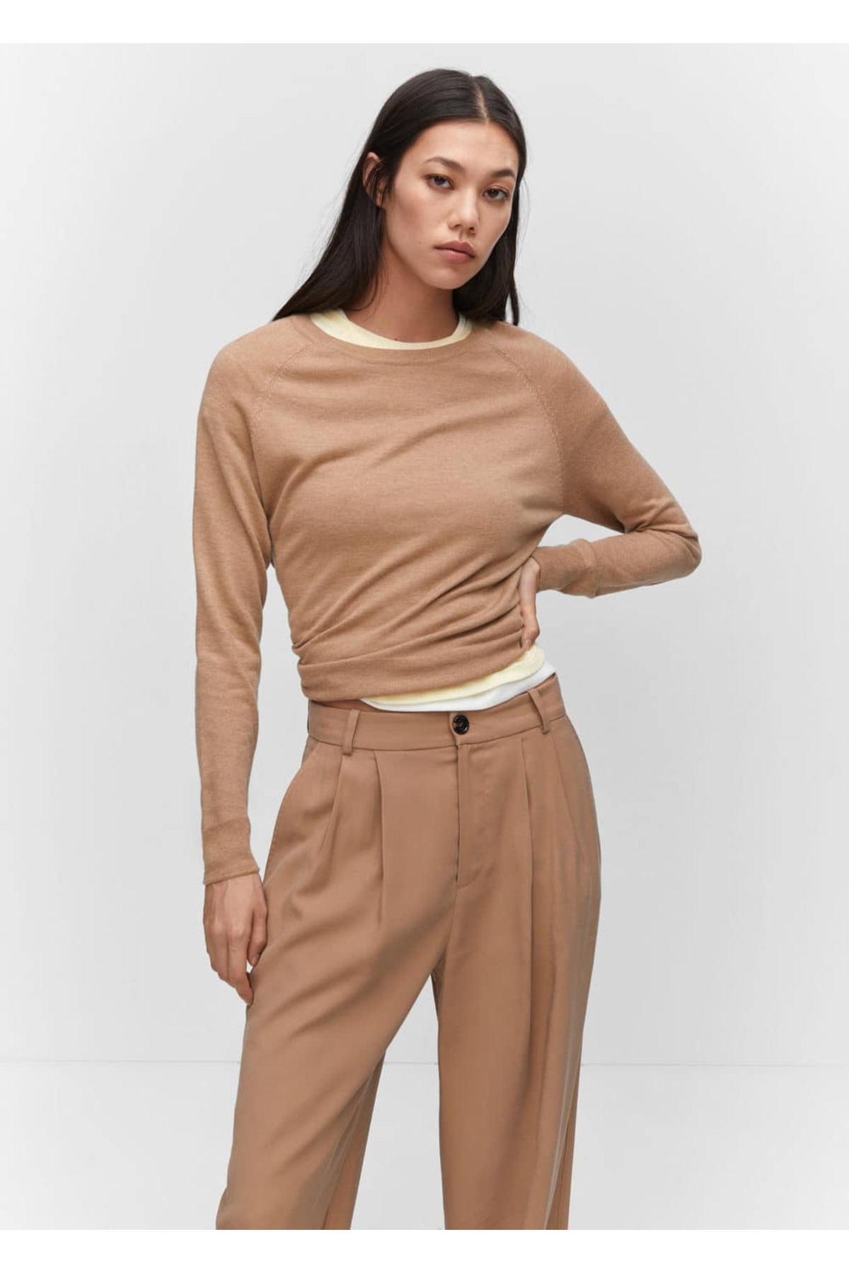 قزاق .– لوکا. پارچه بافتنی ظریف، طرح ساده، یقه گرد، آستین بلند، تریم کشسان، سایز بزرگ موجود است. 38% ویسکوز، 34% پلی استر، 22% پلی آمید، 6% کشمیر. طول پشت 63.5 سانتی متر. حداکثر دست در دمای 30 درجه سانتی گراد بشویید، از سفید کننده حداکثر استفاده نکنید. اتو در دمای 110 درجه سانتیگراد، خشکشویی نشود، در خشک کن نمی توان آن را خشک کرد.