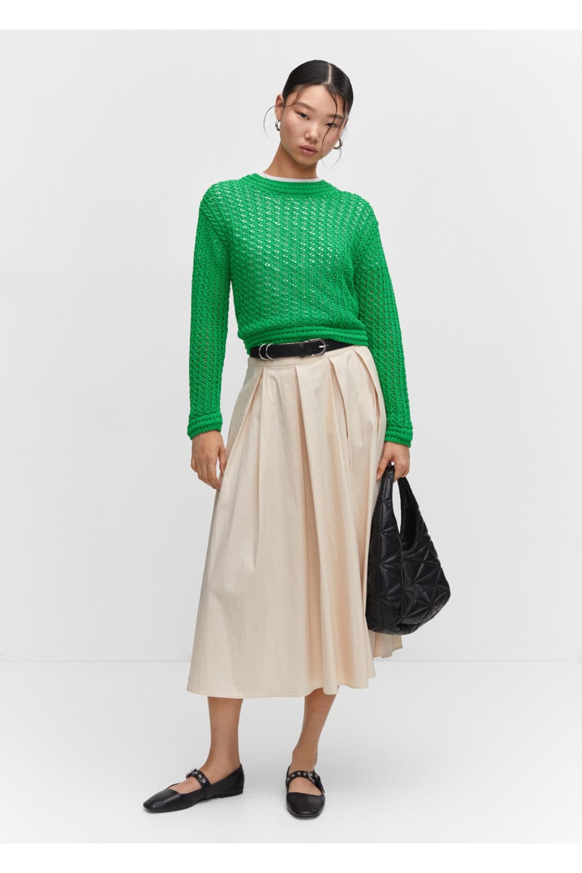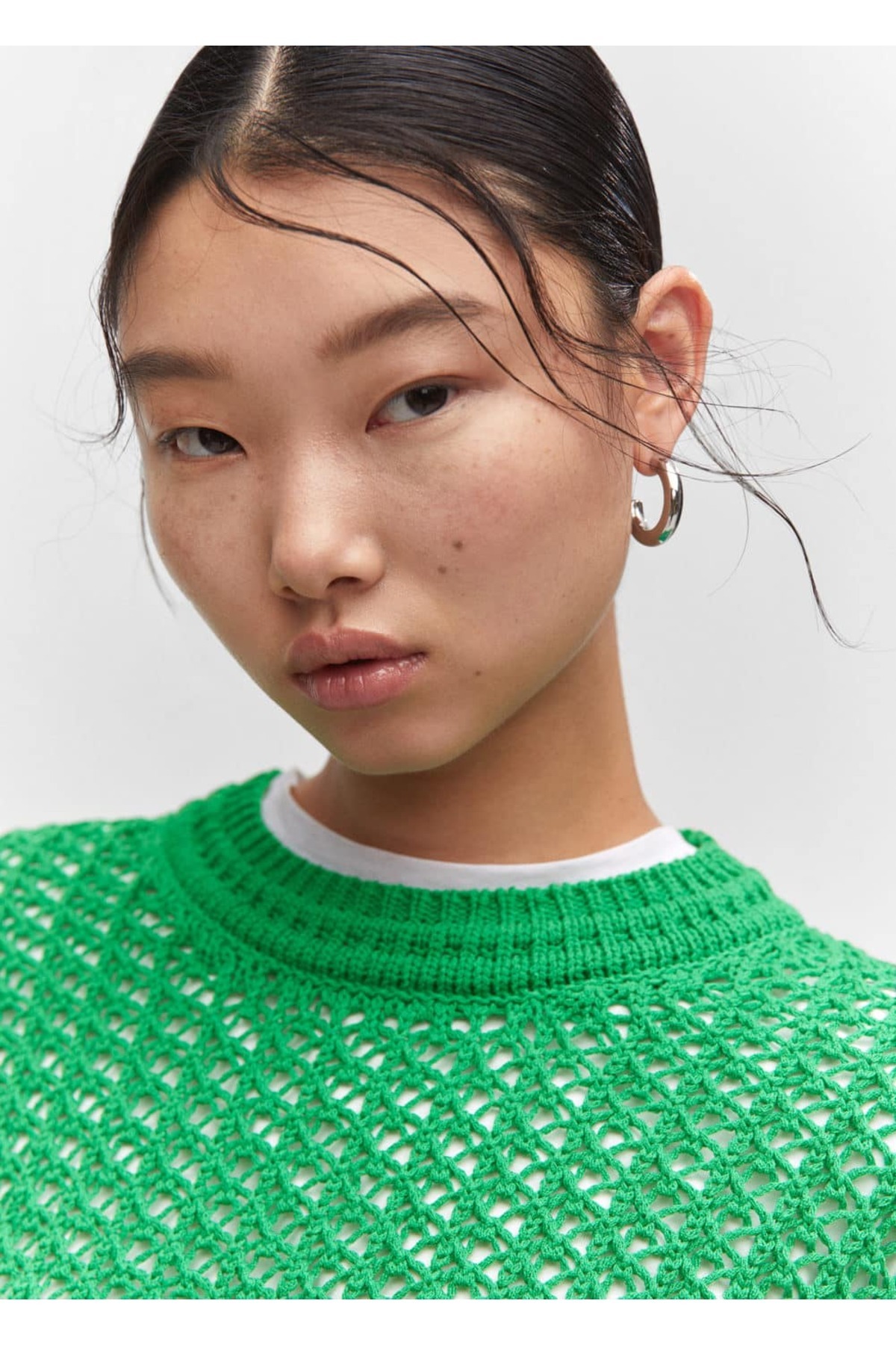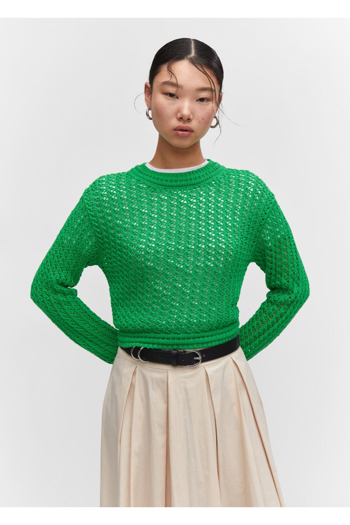 قزاقستان .– چنگال. پارچه توری، بافتنی با ضخامت متوسط، طرح ساده، قد کوتاه، یقه گرد، آستین بلند، رنگ کنتراست دنده روی یقه، آستین و پایین. 100% اکریلیک. حداکثر دست در دمای 30 درجه سانتی گراد بشویید، از سفید کننده حداکثر استفاده نکنید. اتو را در دمای 110 درجه سانتیگراد، خشک شویی نکنید، در خشک کن نمی توان آن را خشک کرد.