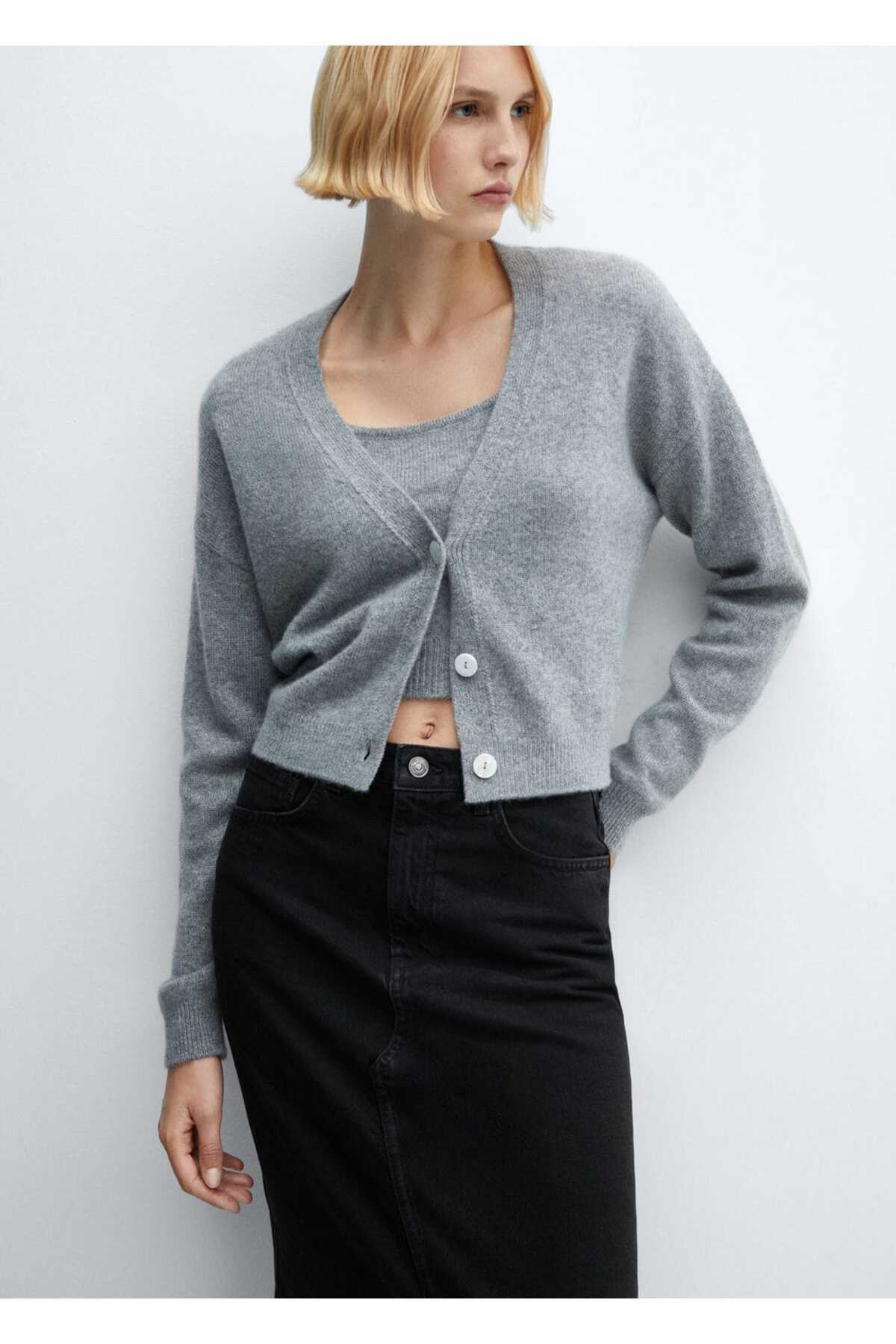 تی شرت خاکستری زنانه مانگو 57065799