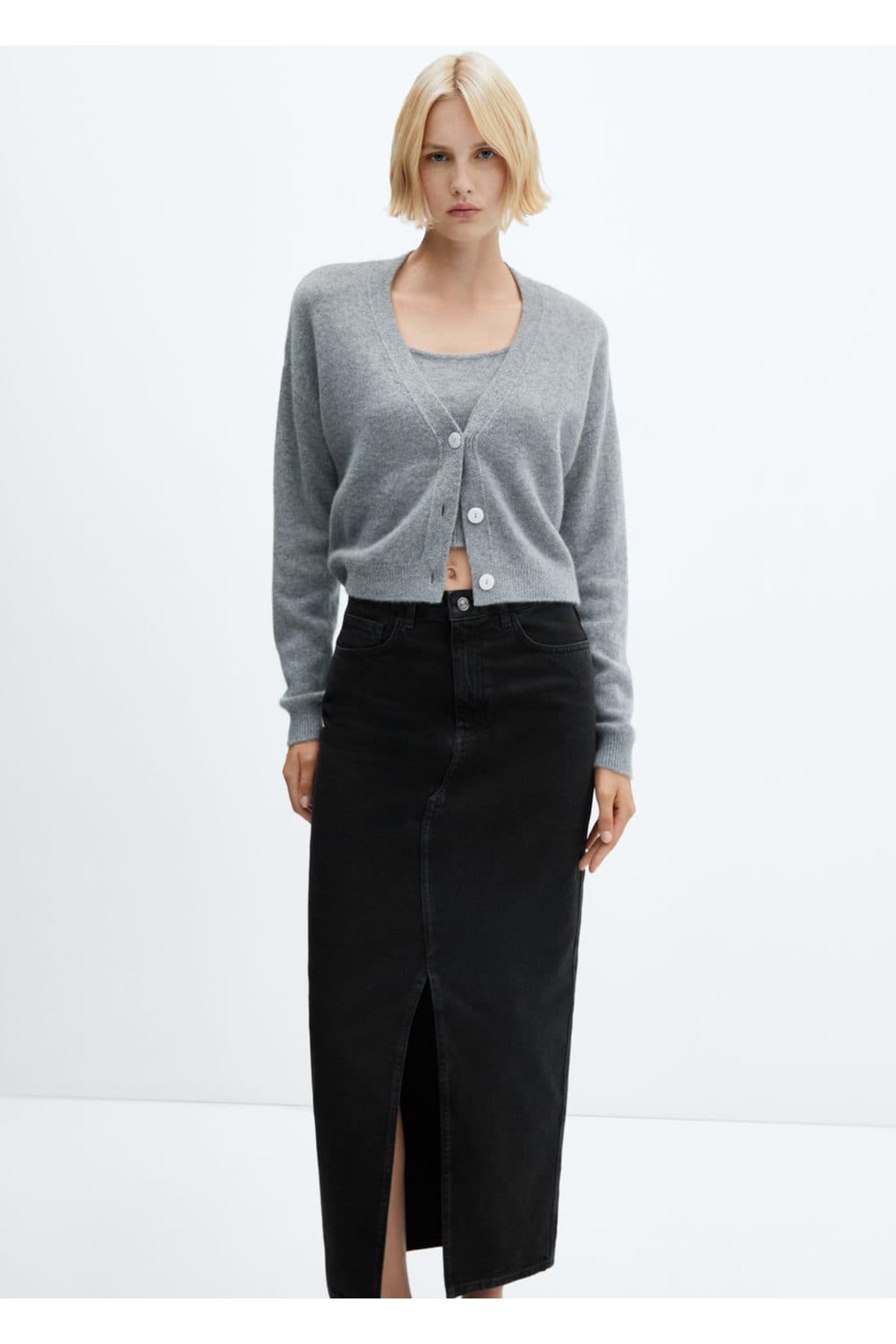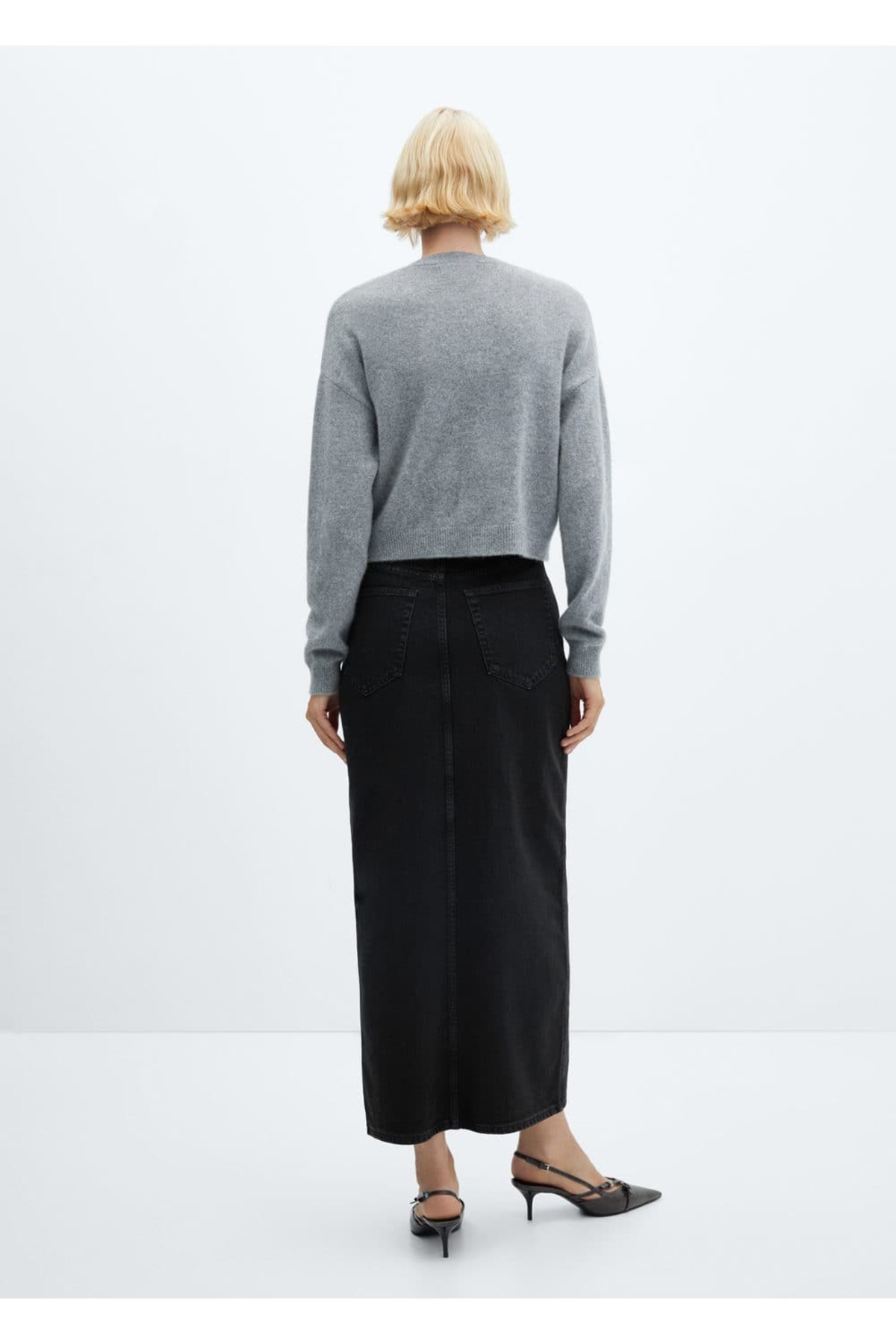 دامن .– ماتیلدا. پارچه نخی به سبک جین، طرح راست، مدل بلند، کمر معمولی، پنج جیب، حلقه کمربند، بسته شدن زیپ و دکمه، شکاف در پایین، مدل قد 179 و سایز 36 است، با این محصول نخی از سرمایه گذاری ما در ماموریت بهتر پنبه. این پارچه دارای تعادل جرمی است که Better Cotton را با پنبه سنتی جایگزین یا ترکیب می کند