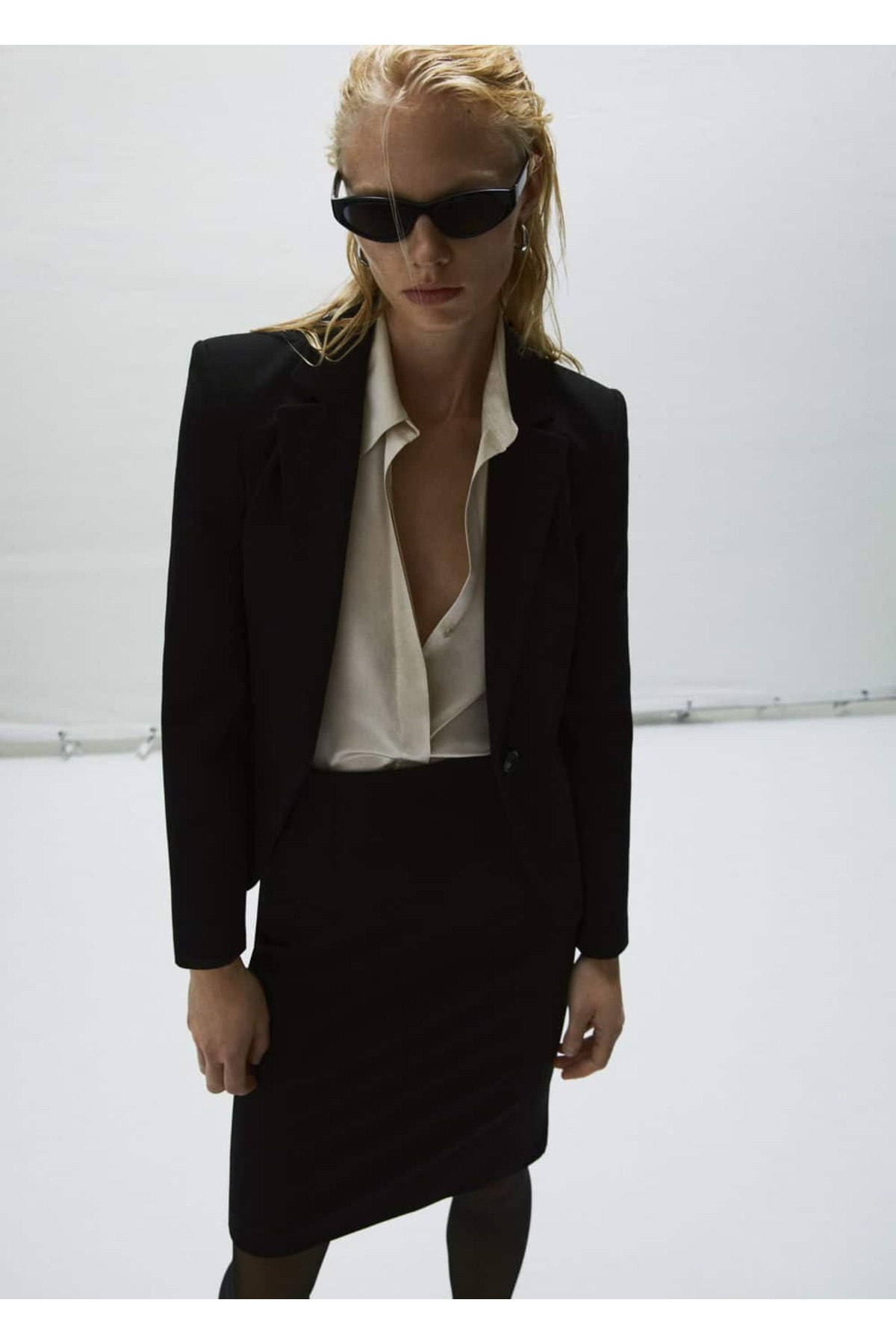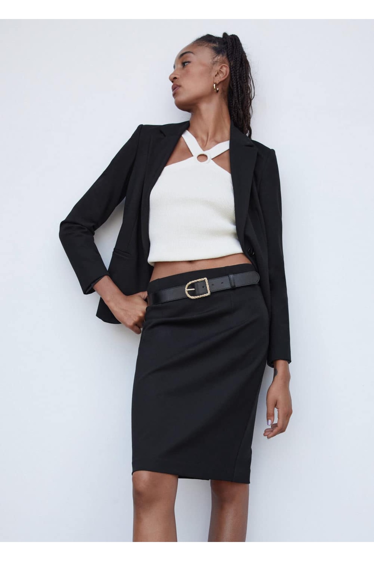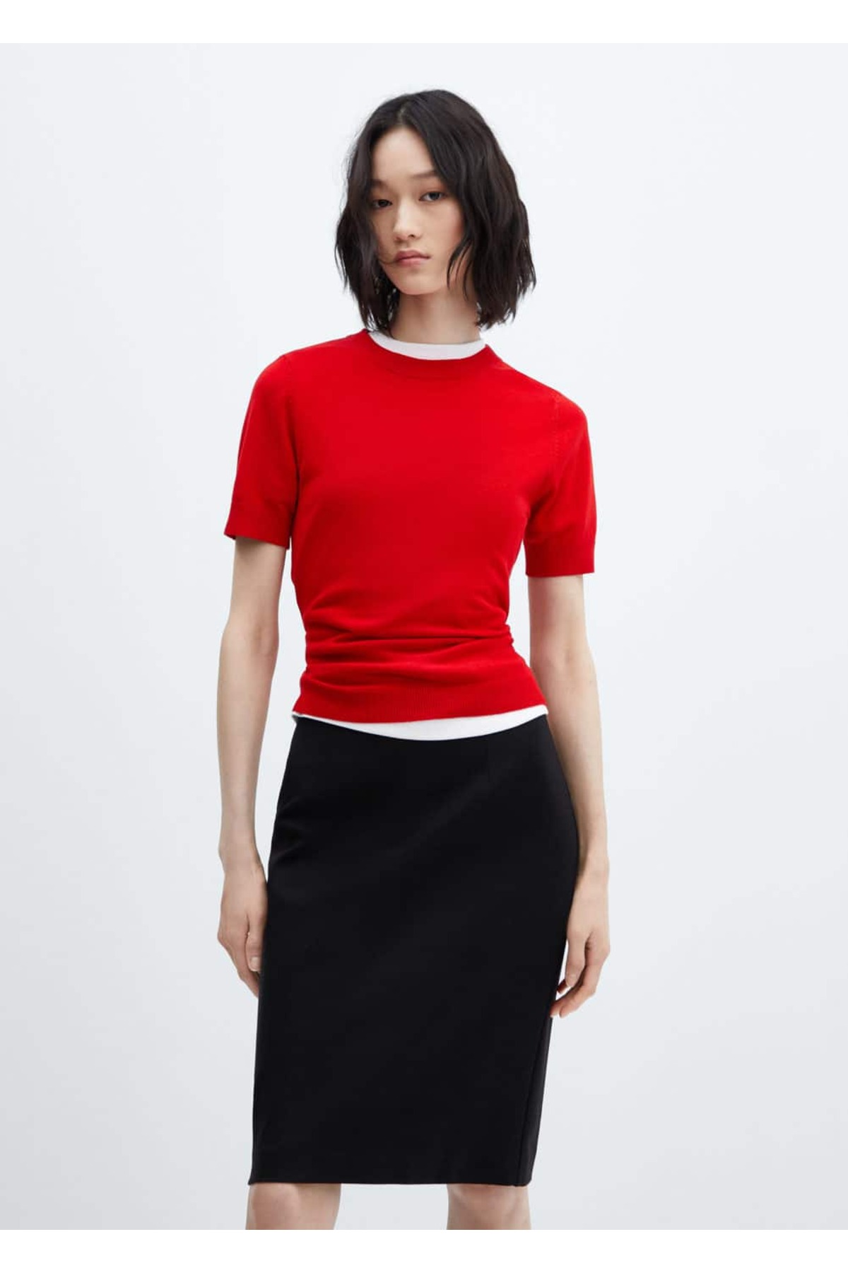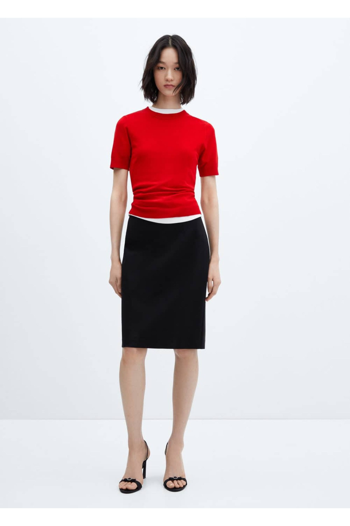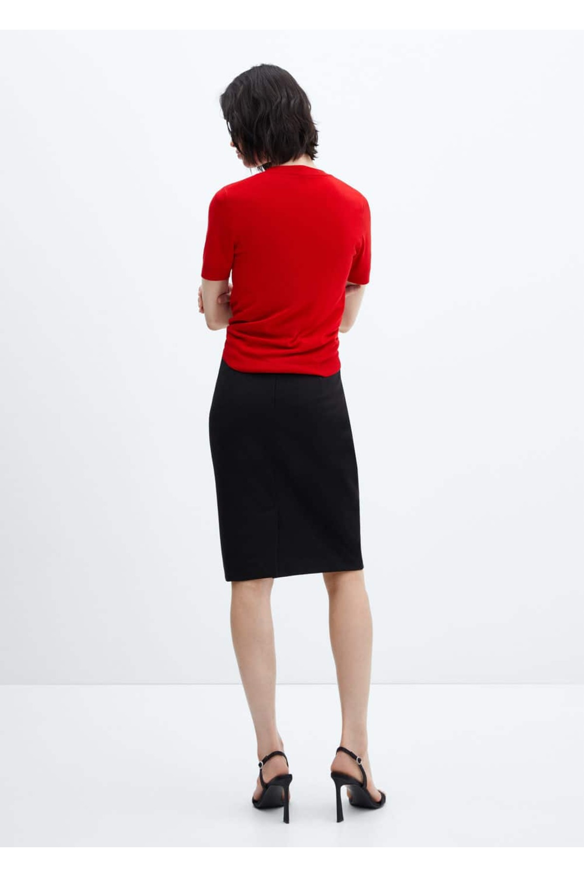 دامن .–paloma. پارچه پونته، مدل مداد، مدل فیت، قد میدی، کمر بلند، بسته شدن زیپ مخفی در پشت، جزئیات چاک دار پشت، ظاهر کامل. 67% ویسکوز، 29% پلی آمید، 4% الاستین، آستر: 100% پلی استر. طول درز پهلو 58.2 سانتی متر طول دامن 58.6 سانتی متر. حداکثر در دستگاه با سانتریفیوژ کوتاه. در دمای 30 درجه سانتی گراد بشویید، از سفید کننده حداکثر استفاده نکنید. اتو در دمای 110 درجه سانتیگراد، خشک شویی با پرکلرو اتیلن، قابل خشک کردن در خشک کن نیست.