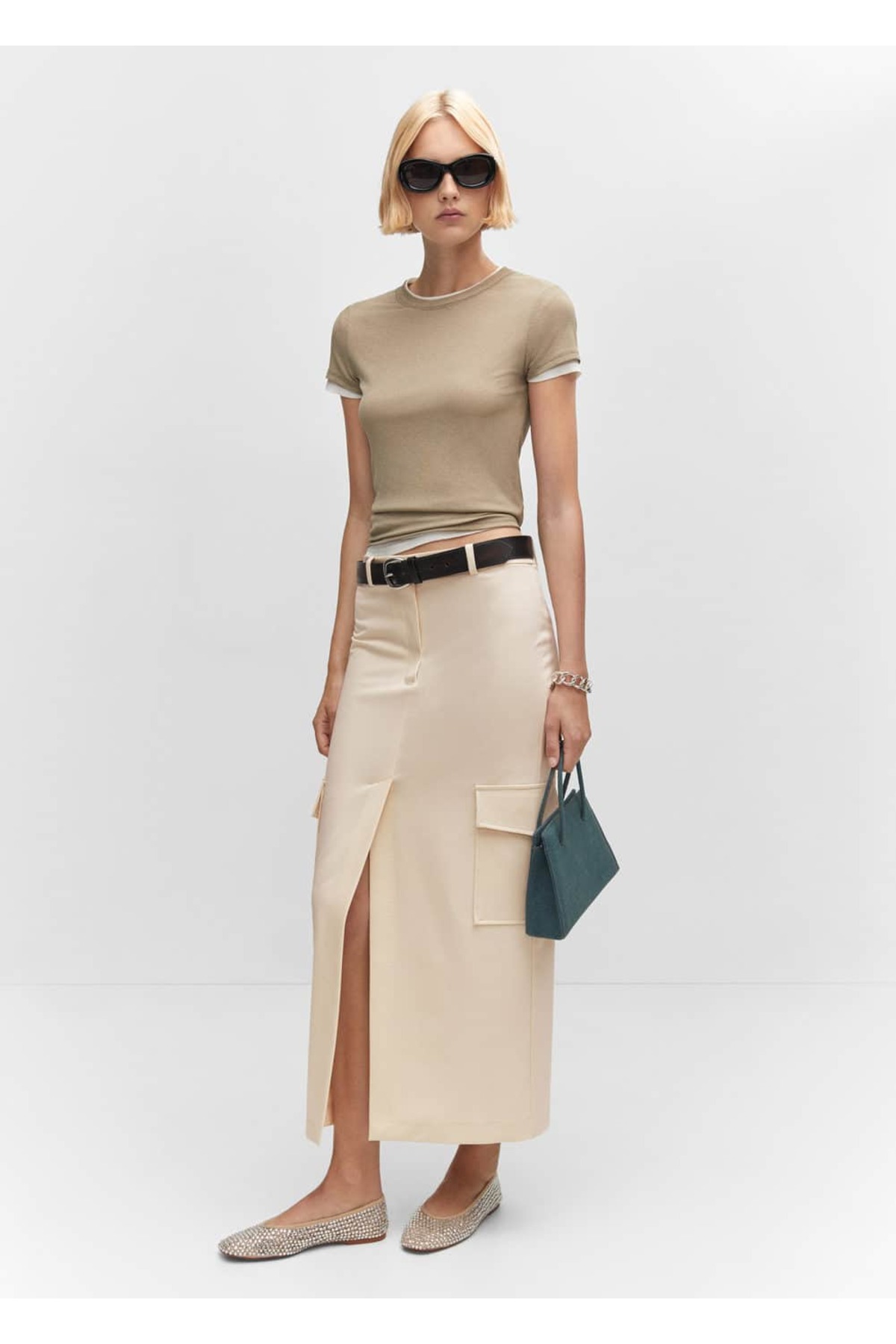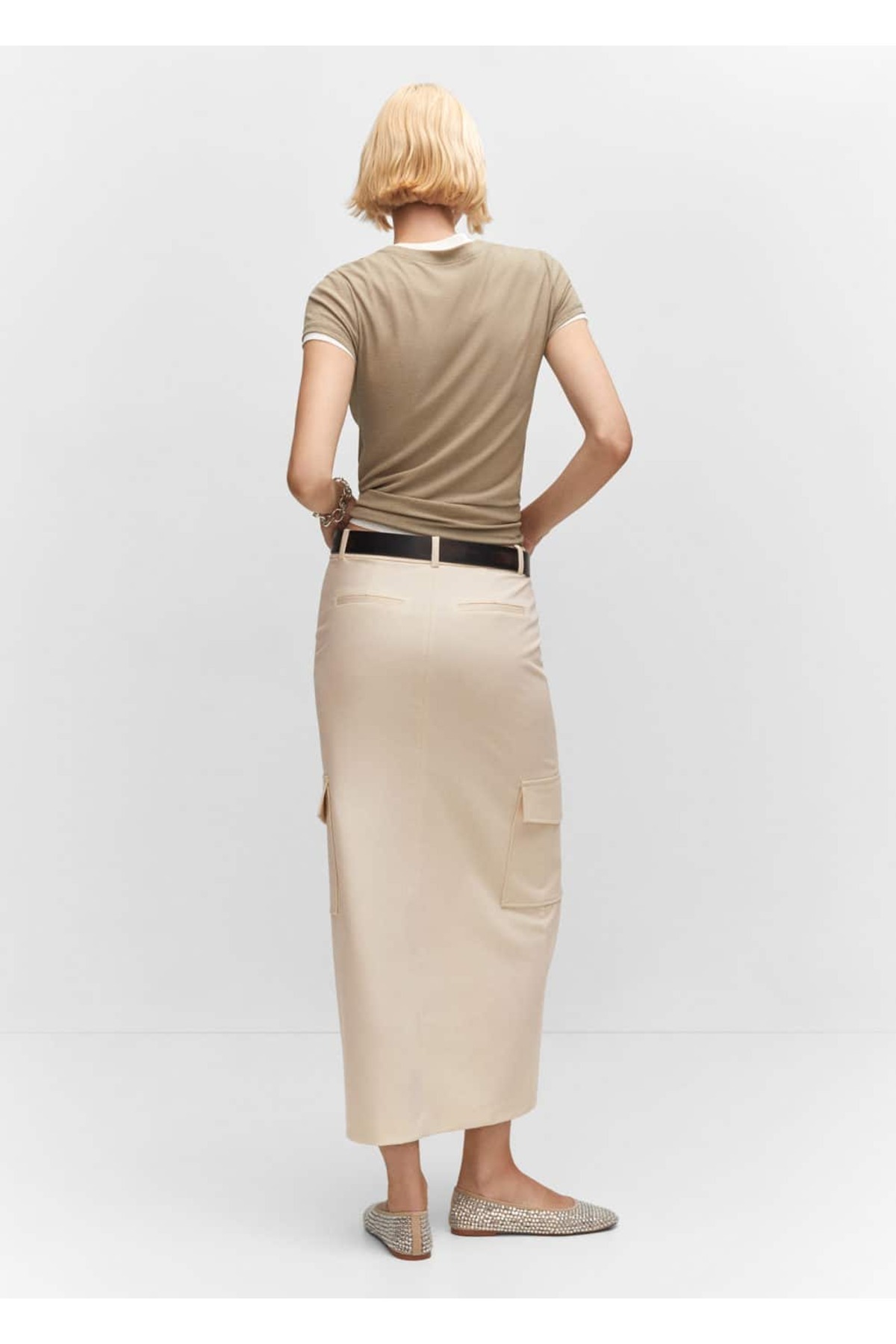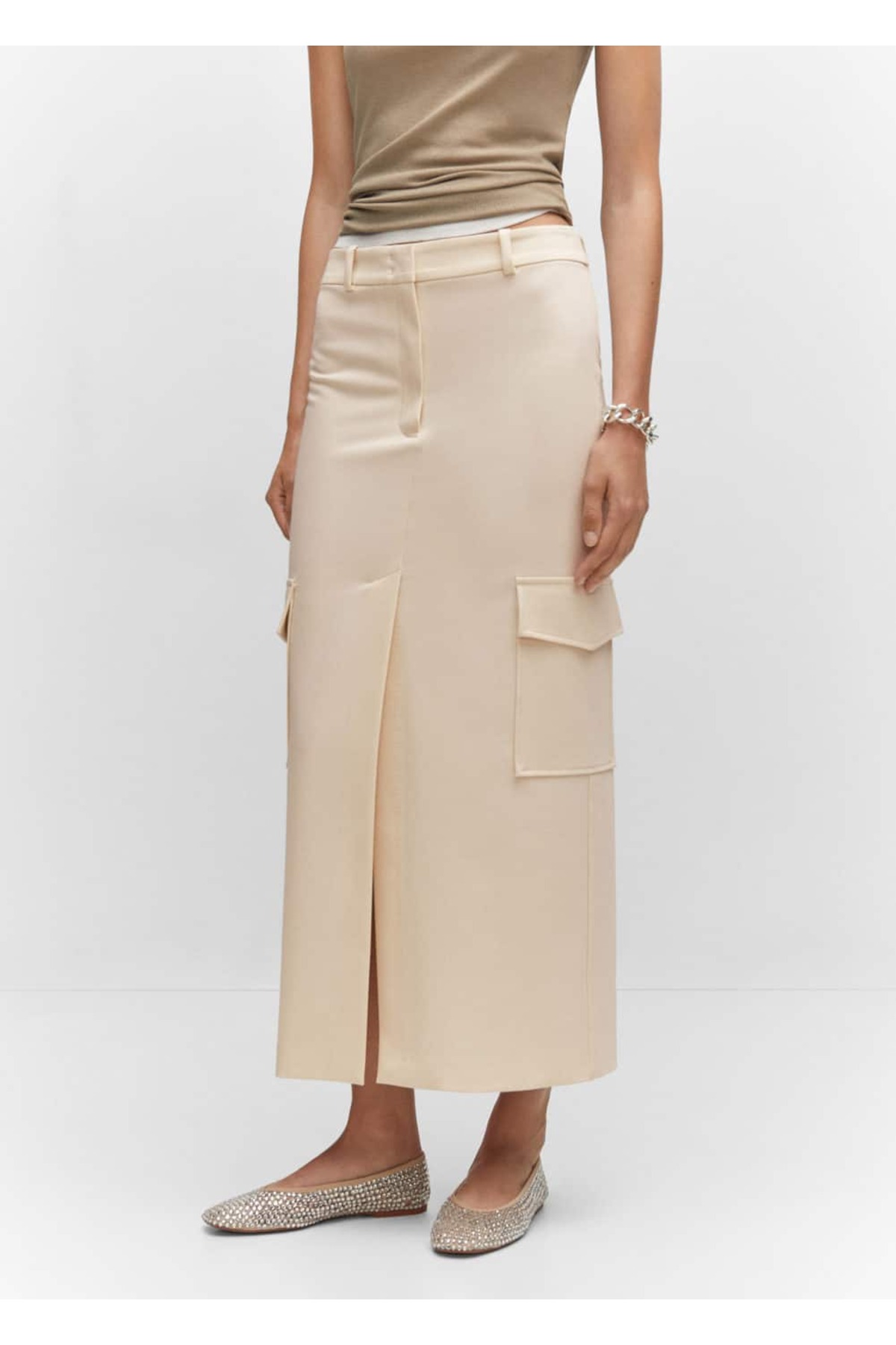 دامن .– میرتا. پارچه روان، طرح بار، مدل بلند، کمر بلند، حلقه کمربند، دو جیب باری، دو جیب پشتی، دکمه مخفی، بسته شدن قلاب و زیپ، شکاف جلو. 76% پلی استر، 17% ویسکوز، 7% الاستین، آستر: 100% پنبه. حداکثر روی ماشین در دمای 40 درجه سانتی گراد بشویید، از سفید کننده استفاده نکنید، حداکثر. اتو در دمای 150 درجه سانتیگراد، خشک شویی با پرکلرو اتیلن، قابل خشک کردن در خشک کن