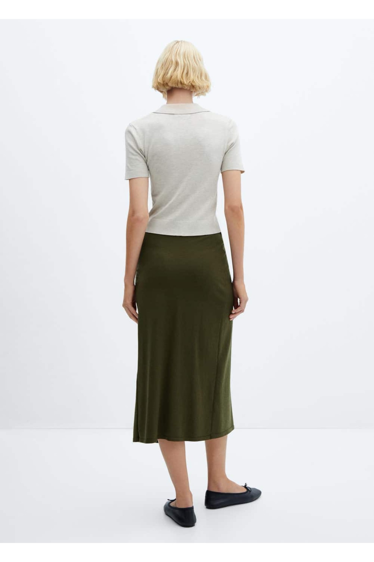 دامن .– percebe. پارچه کشباف ظریف، مدل رول، طرح ساده، قد میدی، کمر بلند، کمر کش دار، بدون بسته شدن. 52٪ ویسکوز، 28٪ پلی استر، 20٪ پلی آمید. طول درز کناری 85.5 سانتی متر. حداکثر دست در دمای 30 درجه سانتی گراد بشویید، از سفید کننده حداکثر استفاده نکنید. اتو را در دمای 110 درجه سانتیگراد، خشک شویی نکنید، در خشک کن نمی توان آن را خشک کرد.
