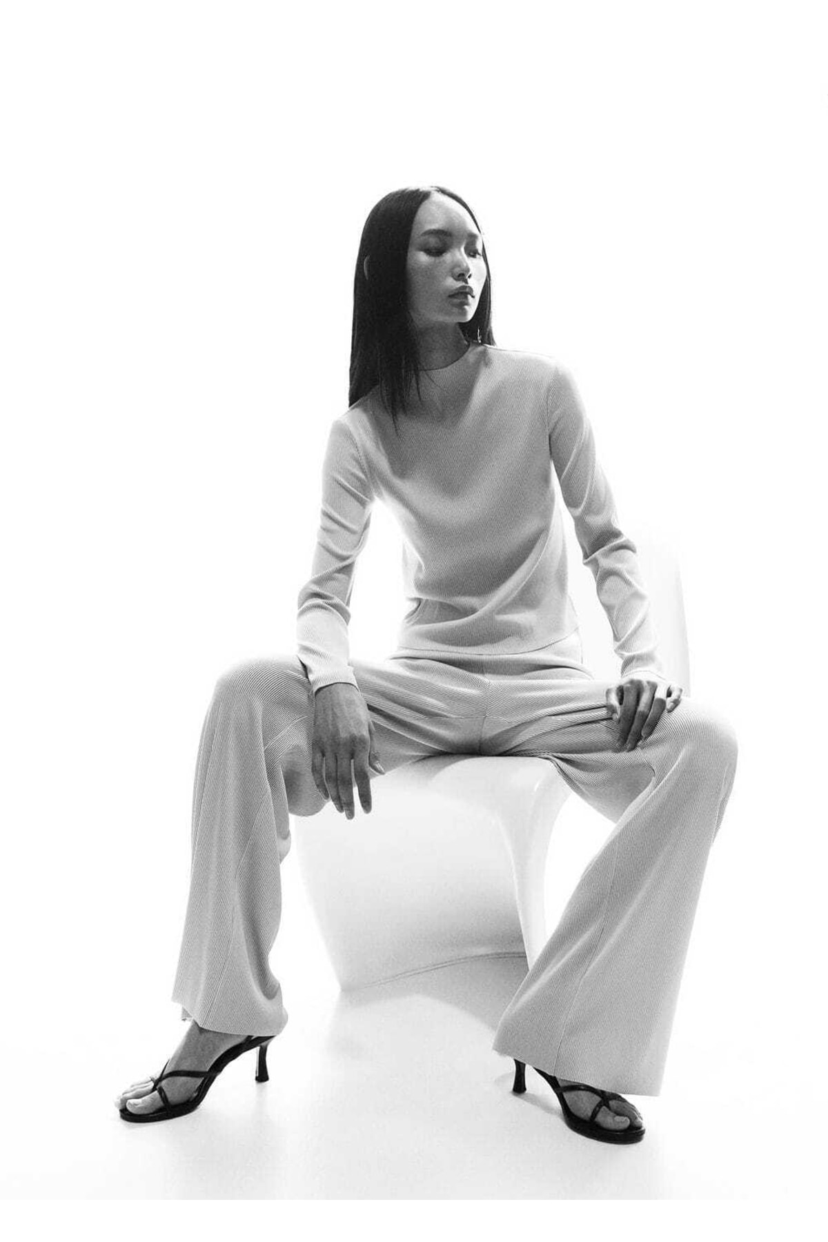 شلوار .– ماریونا. پارچه چین دار، طرح پالازو، طرح راست، مدل بلند، کمر معمولی، کمر کش دار، ظاهر توتال. 89٪ پلی استر، 11٪ الاستین. اندازه داخلی ساق 82.5 سانتی متر، طول درز کناری 110.7 سانتی متر. حداکثر در دستگاه با سانتریفیوژ کوتاه. در دمای 30 درجه سانتی گراد بشویید، از سفید کننده حداکثر استفاده نکنید. اتو در دمای 110 درجه سانتیگراد، خشکشویی نشود، در خشک کن نمی توان آن را خشک کرد.