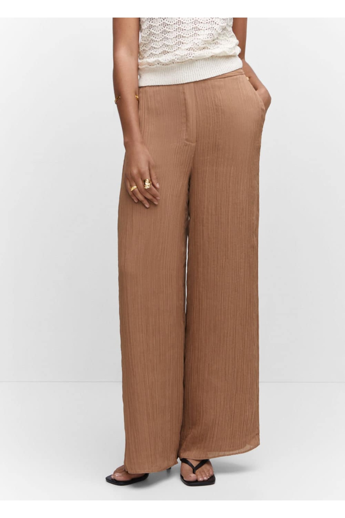 شلوار قهوه ای فاق نرمال زنانه مانگو 57040718