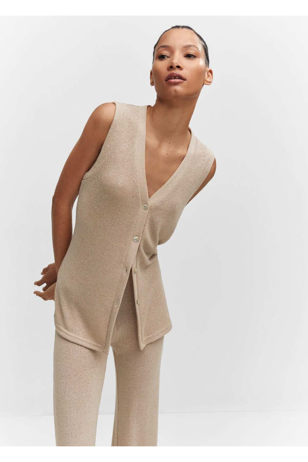 شلوار بژ فاق نرمال زنانه مانگو 57072880