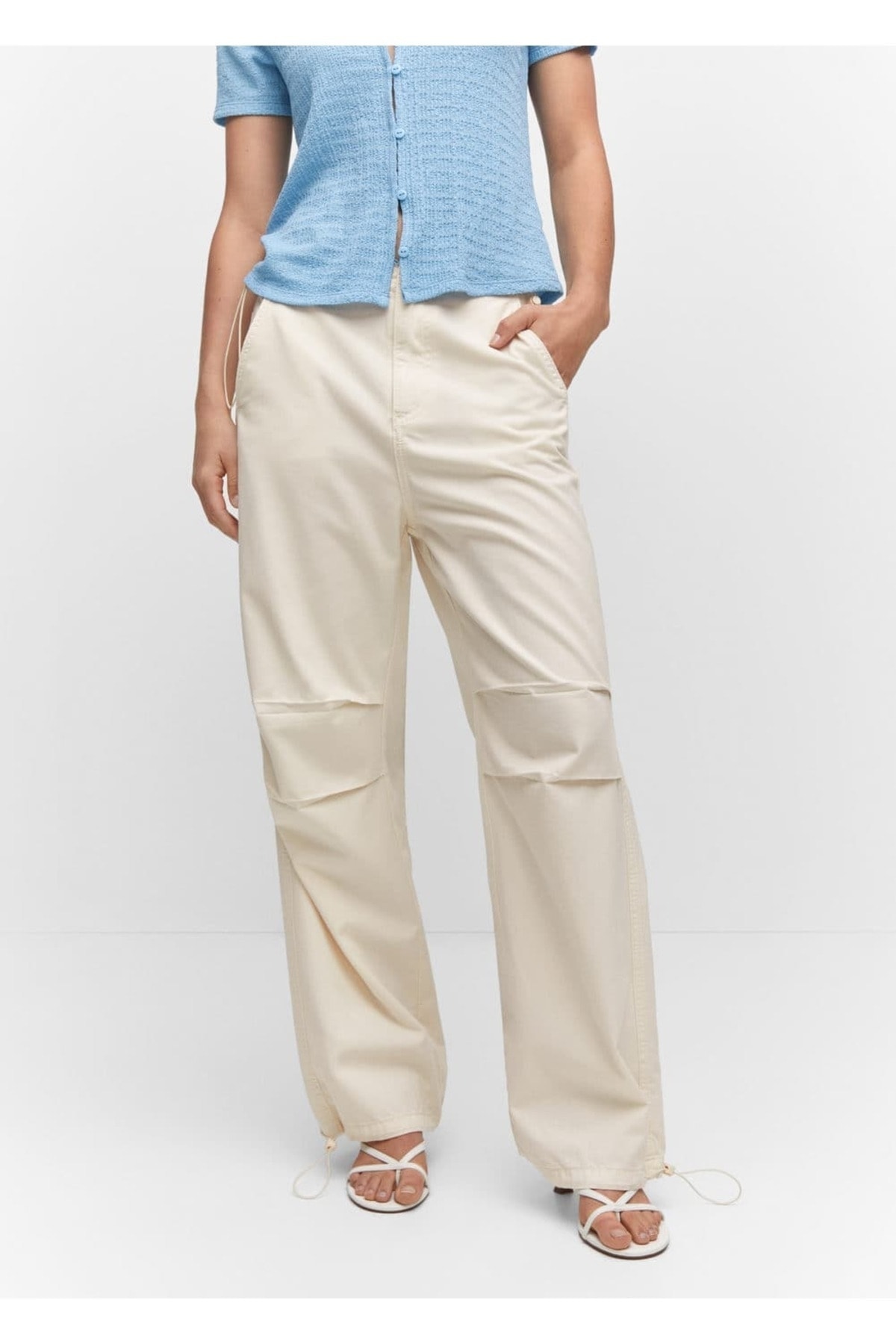 شلوار .–چتر نجات. پارچه 100% پنبه، پارچه روان، طرح بار، مدل بلند، کمر معمولی، کمر قابل تنظیم با کش داخلی، بسته شدن با زیپ و دکمه پنهان، دو جیب کناری، دو جیب وصله در پشت، سجاف کش دار، قسمت پایین قابل تنظیم، Inseam 72 سانتی متر، رنگ مایل به سفید فقط در فروشگاه اینترنتی موجود است، با این محصول پنبه ای، از سرمایه گذاری ما در ماموریت Better Cotton حمایت می کنید. این پارچه دارای تعادل جرمی است که Better Cotton را با پنبه سنتی جایگزین یا ترکیب می کند