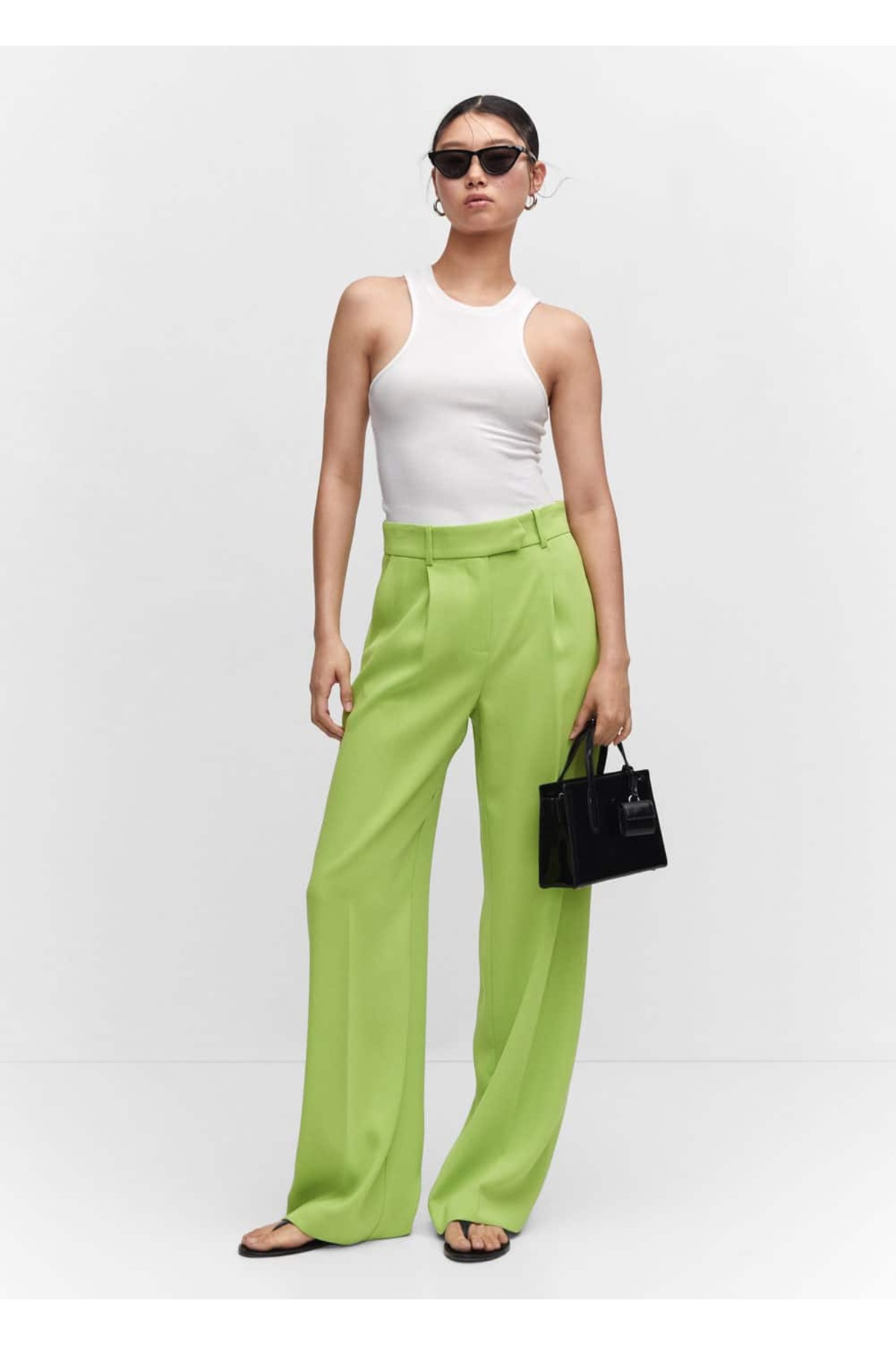 شلوار سبز فاق نرمال زنانه مانگو 57063797