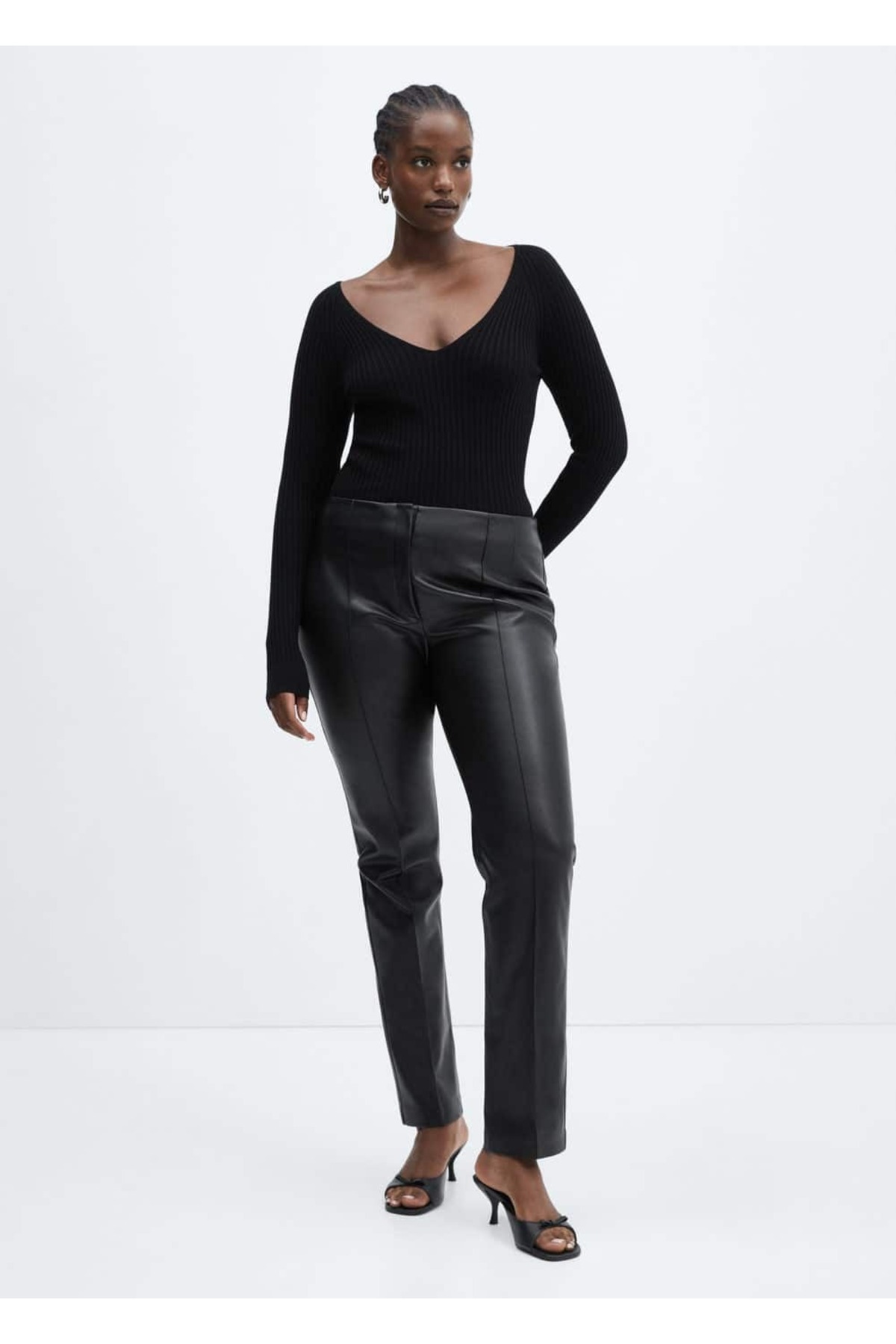 شلوار منگو سیاه فاق نرمال زنانه مانگو 57099080