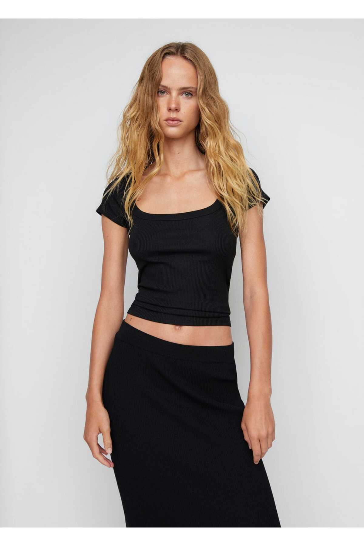 تی شرت سیاه زنانه مانگو 57084037