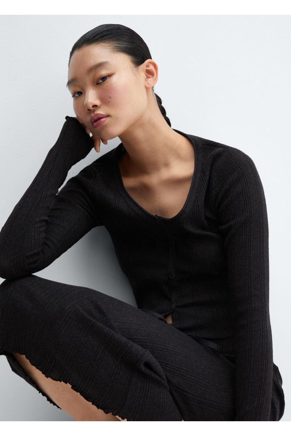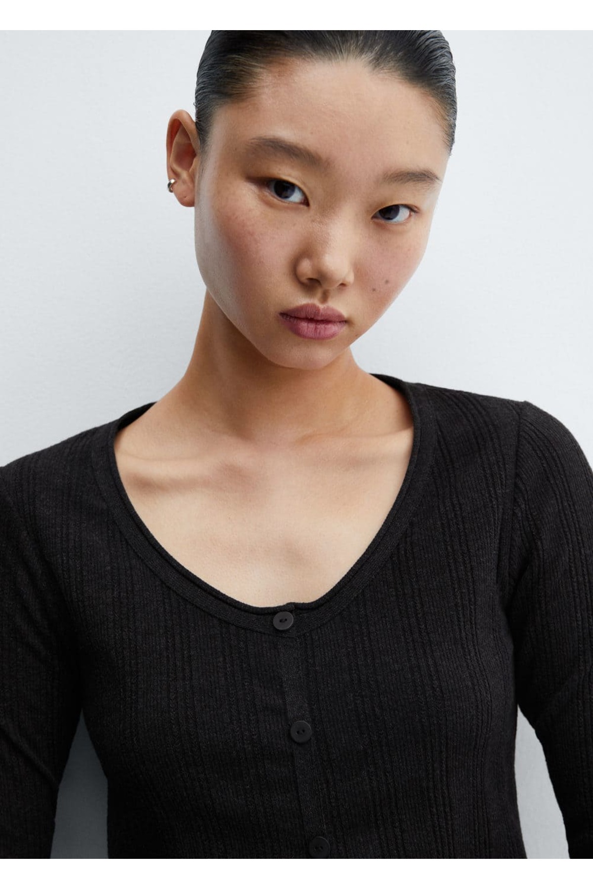 تی شرت .– جزیره. پارچه بافتنی، مدل مناسب، یقه گرد، آستین بلند، دکمه در جلو، پاپیون در کمر، ظاهر توتال. 47% پلی استر، 46% پنبه، 7% الاستین. طول درز پهلو 24.6 سانتی متر طول پشت 45.9 سانتی متر. حداکثر در دستگاه با سانتریفیوژ کوتاه. در دمای 30 درجه سانتی گراد بشویید، از سفید کننده حداکثر استفاده نکنید. اتو در دمای 110 درجه سانتیگراد، خشکشویی نشود، در خشک کن نمی توان آن را خشک کرد.