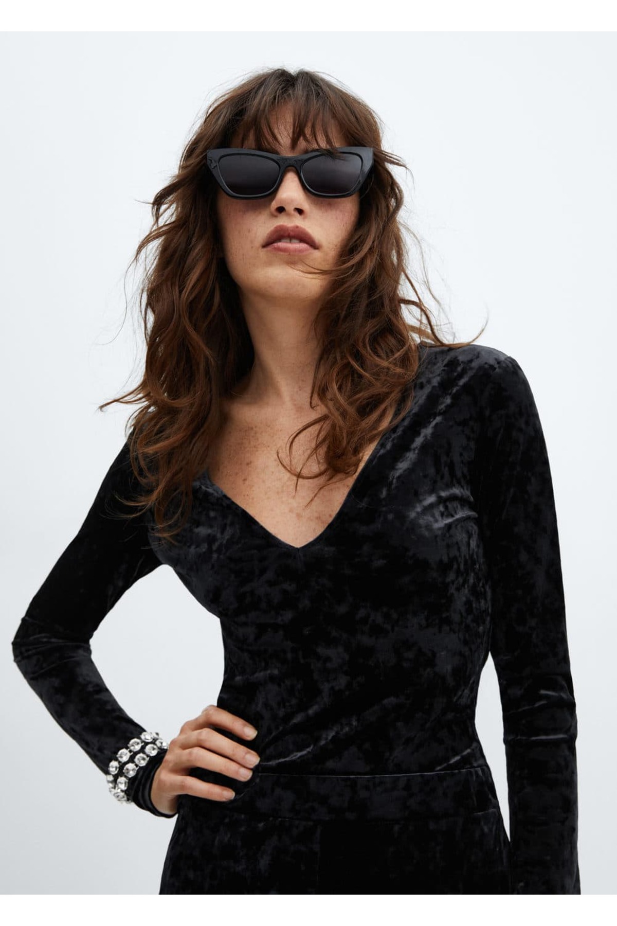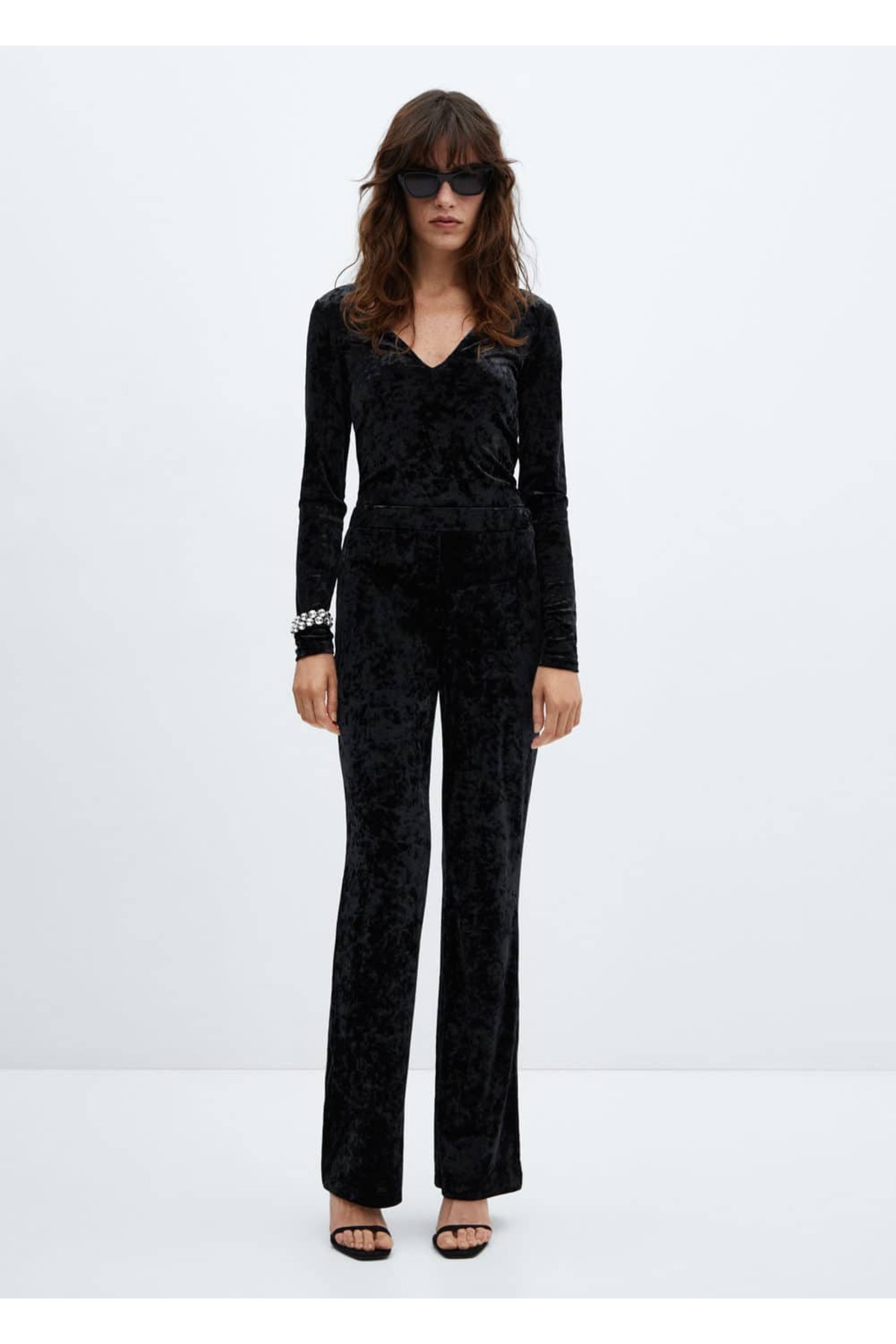 Tişört .– xnati. Kadife kumaş, düz model, v yakalı, uzun kollu, kapamasız, total look, parti ve özel günler koleksiyonu. 92% polyester,8% elastan, Piping: 100% viskoz. Yan dikiş uzunluğu 39.8 cm, Arka uzunluk 60.2 cm. KISA SANTRFÜJLE MAKİNEDE MAKS. 30°C’DE YIKAYIN, ÇAMAŞIR SUYU KULLANMAYIN, ÜTÜLEMEYİN, KURU TEMİZLEME YAPILMAZ, KURUTMA MAKİNESİNDE KURUTULAMAZ